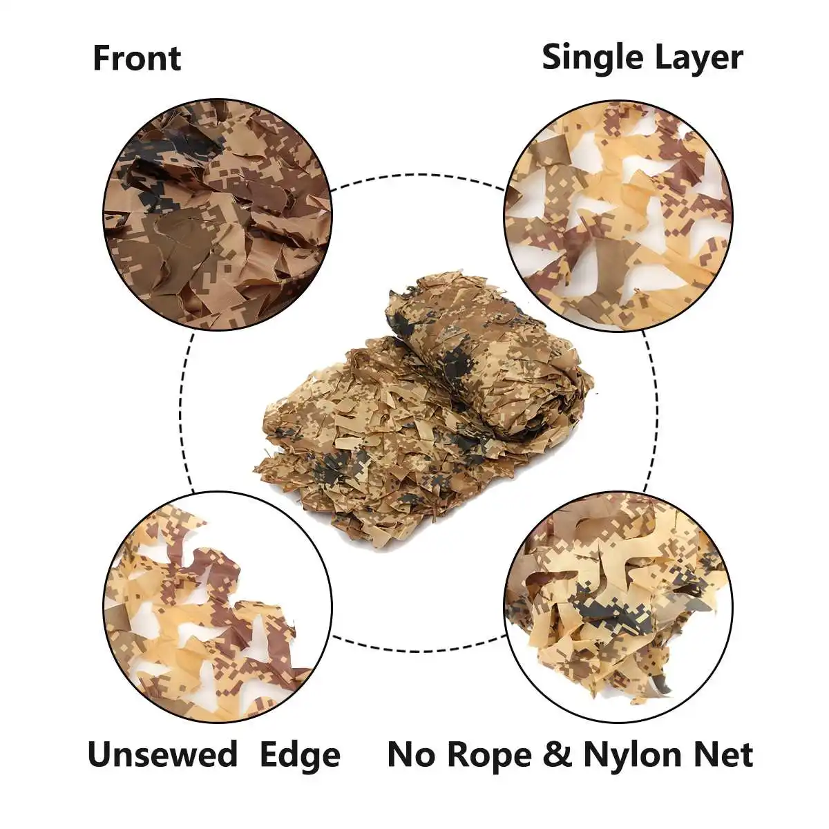 6.5x10ft / 2x3m6.5x16.5ft / 2x5m6.5x20ft / 2x6m6.5x23ft / 2x7m6.5x26ft / 2x8m5x33ft / 1.5x10m5x6.5ft / 1.5x2m5x10ft / 1.5x3m5x13ft / 1.5x4m5x13ft / 1.5x5m5x20ft / 1.5x6m5x23ft / 1.5x7mТип: без нейлоновой сеткиОсобенности:-Однослойный, без швов, выглядит более естественно.-Без сетки сзади, его можно легко разрезать, чтобы сделать нужный вам размер самостоятельно.-Изготовлен из прочного полиэфирного волокна, который может противостоять определенным разрывам.-Хорошо подходит для охоты, наблюдения за птицами, кемпинга, походов, военного тематического парка развлечений, украшения дома и сада, фотографии, покрытия автомобиля и т. д.-Отлично работает в джунглях, Буше, пустыне, пляже, хайленде, океане и многих других условиях.-Быстро сохнет, не впитывает влагу.-Легкий, но компактный, очень прочный.Примечание:Возможны отклонения в 5-10 см вследствие измерений вручную.Пожалуйста, знайте, что на разных дисплеях может быть разница в цвете.