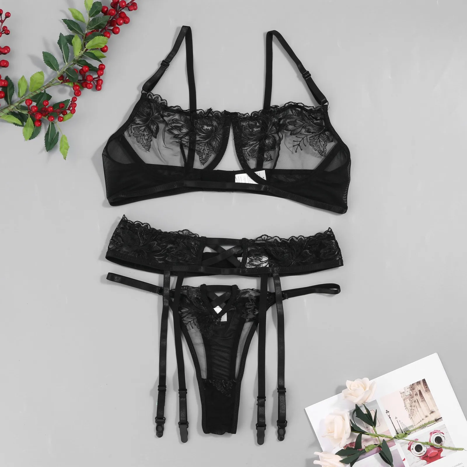 Стальное кольцо бюстгальтер с вышивкой нижнее белье стринги Белье для сна подвязка пояс