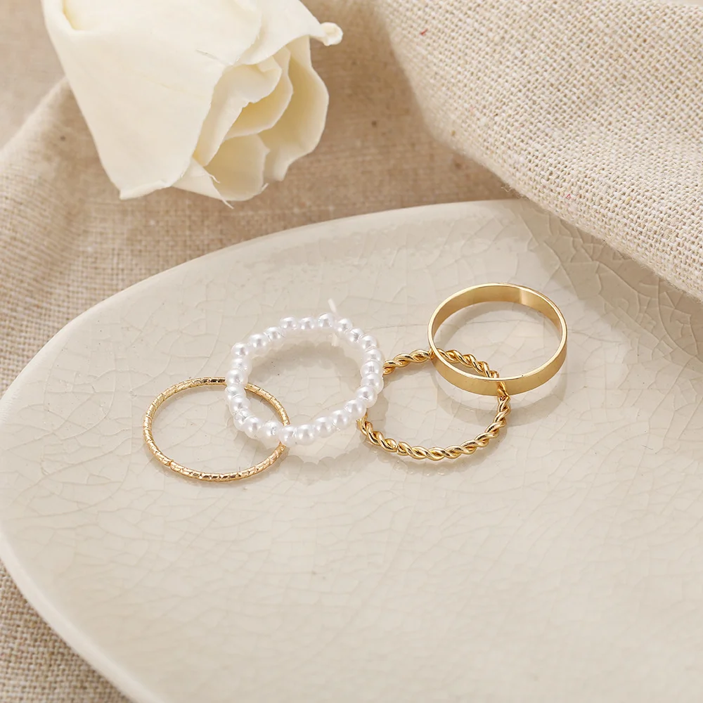 4 шт.компл. креативный комплект колец в стиле ретро с жемчугом для ...