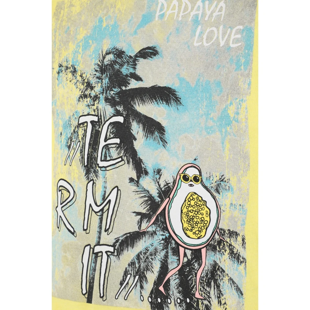 Футболка, выполненная из хлопка и полиэстера. Детали: свободный крой, короткие рукава, большой принт на груди.