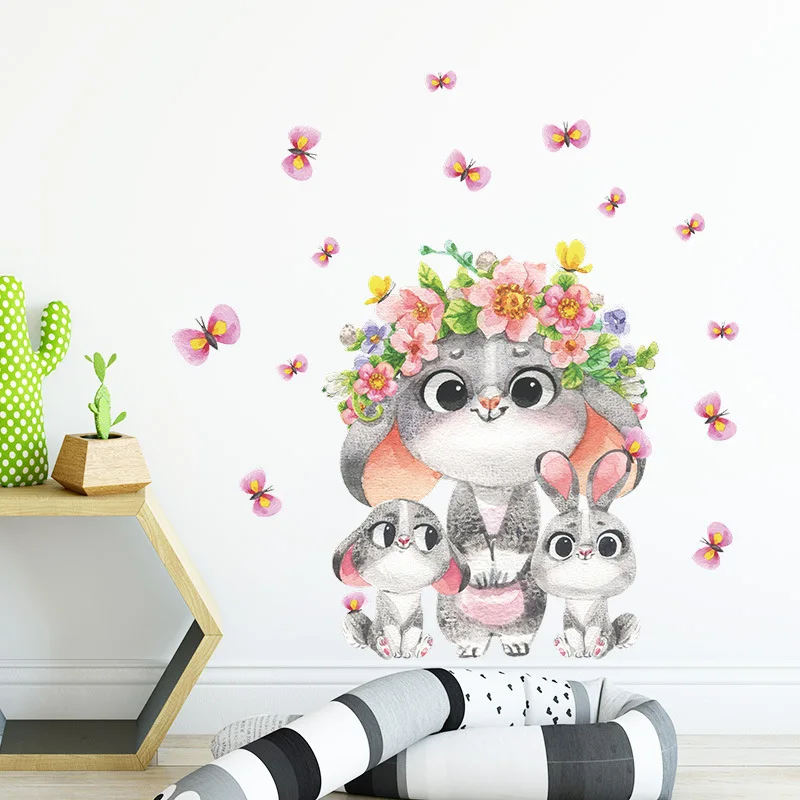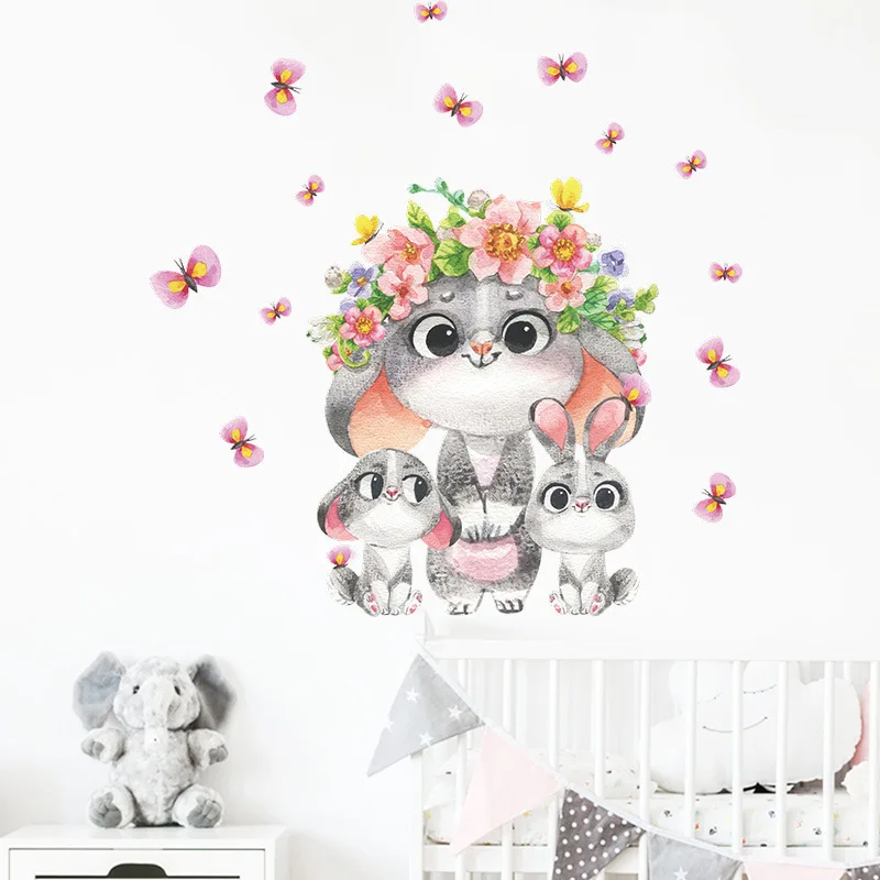 Цветок Трава Бабочка Большие Глаза стикер на стену в виде кролика плинтус Клевер Декор угол плинтус линия Флора дома Наклейка для Kichen комнаты