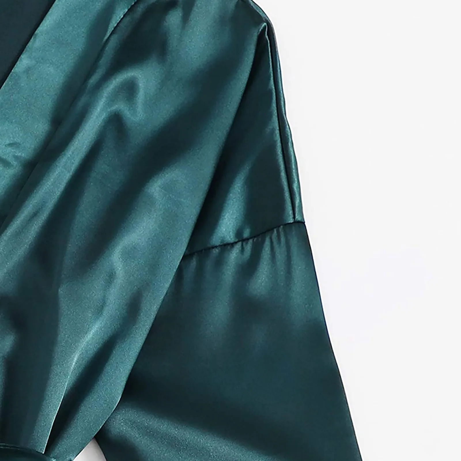 Женский атласный Шелковый комплект из 4 предметов, сексуальное нижнее белье с подвязками, Кружевное боди с глубоким V-образным вырезом, нижнее Белье для сна