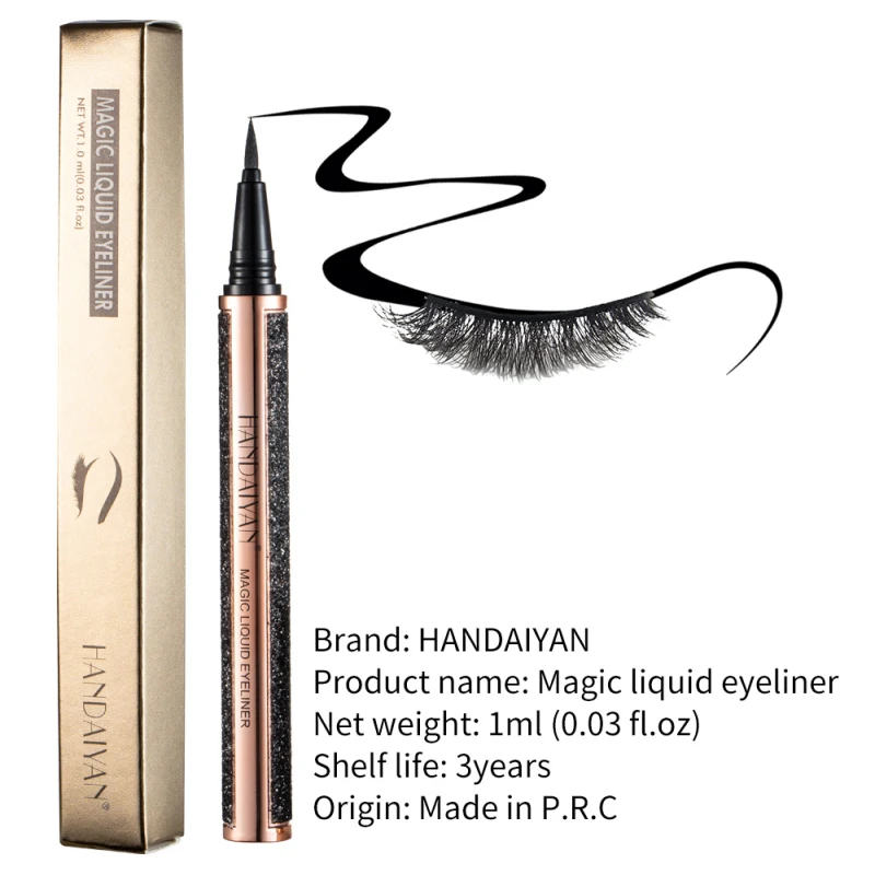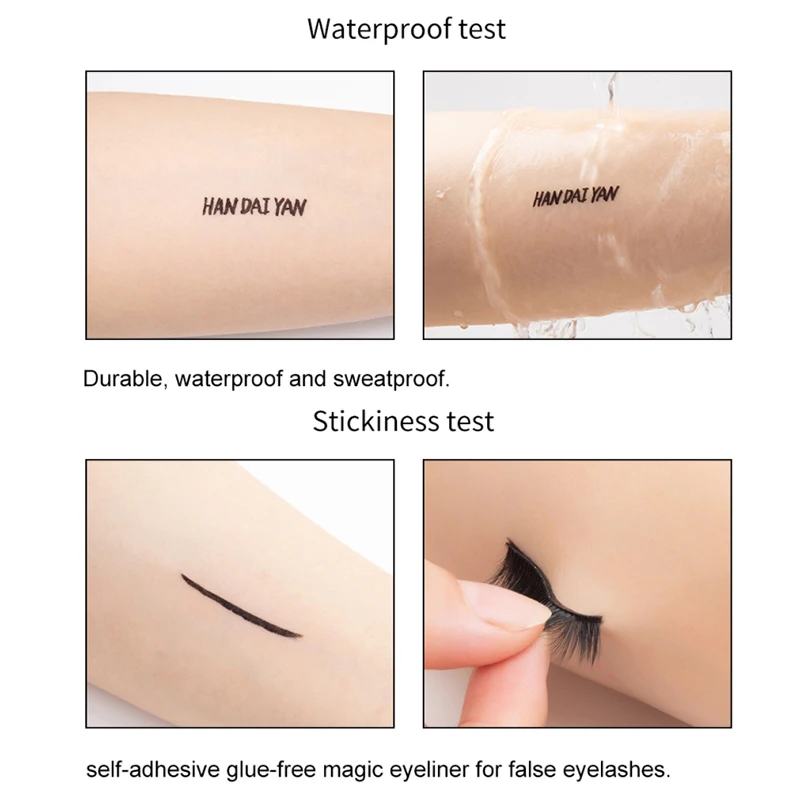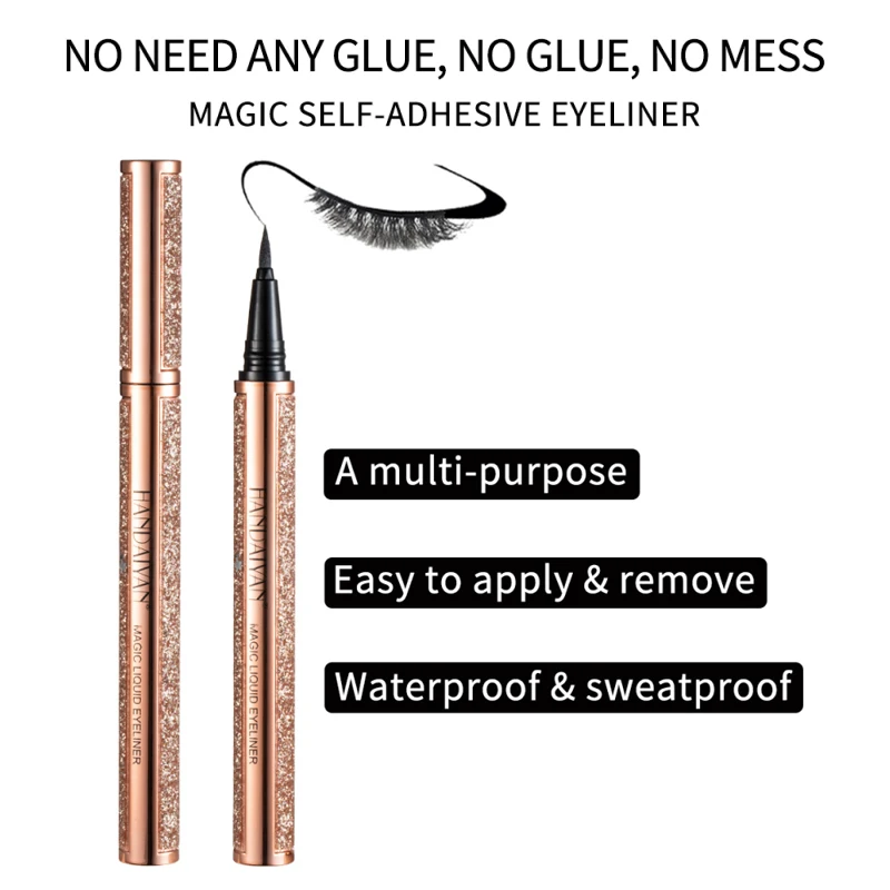 HANDAIYAN 2 In 1 Eyeliner Self Adhesive False Eyelashes Eyeliner Black Long Lasting No Glue Non Blooming Quick Drying Sticking