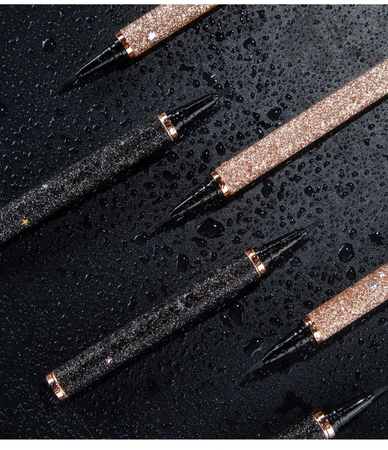 Самоклеящаяся подводка для глаз HANDAIYAN 2 в 1, подводка для глаз с накладными ресницами, черная, стойкая, без клея, не Цветущая, быстросохнущая, приклеивающаяся