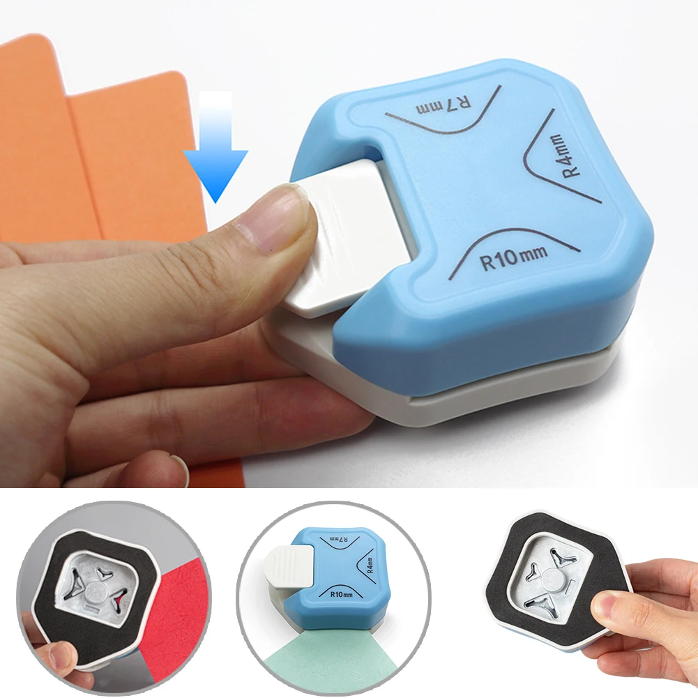 * 2. 3-сторонний Выход Резак-это компактный прибор для радиусной обработки углов резак 4 мм/7 мм/10 мм радиус угла, который отлично подходит для крафт-бумаги, компактный размер Идеально лежит в руке и обеспечивает удобство хранения.
