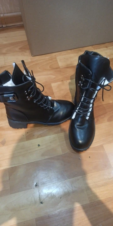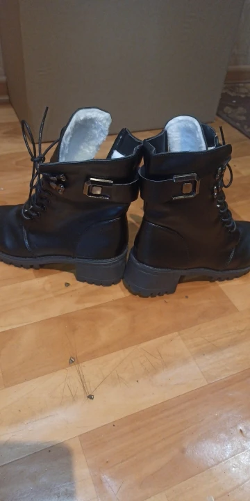 Зимние ботинки на толстой подошве женские короткие ботинки с шерсть...