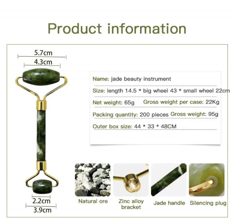 3. Использование Нефритового ролика: нефритовый ролик имеет 2 конца, больший Конец подходит для массажа лица и шеи, Маленький Ролик подходит для глаз и маленького угла, Аккуратно протолкните по направлению роста кожи и помассируйте в течение 10 - 15 минут или Нагрейте ее в горячей воде, восстановите массаж, чтобы ускорить уход за кожей Крем