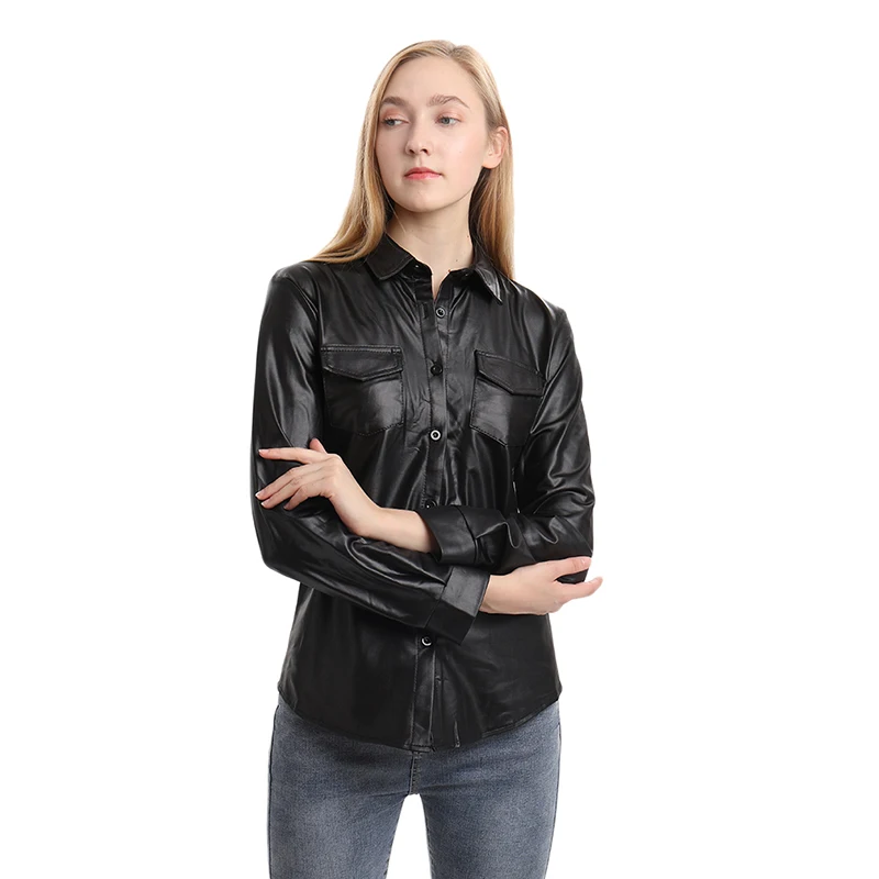 Женская Повседневная блузка из искусственной кожи, с длинным рукаво...