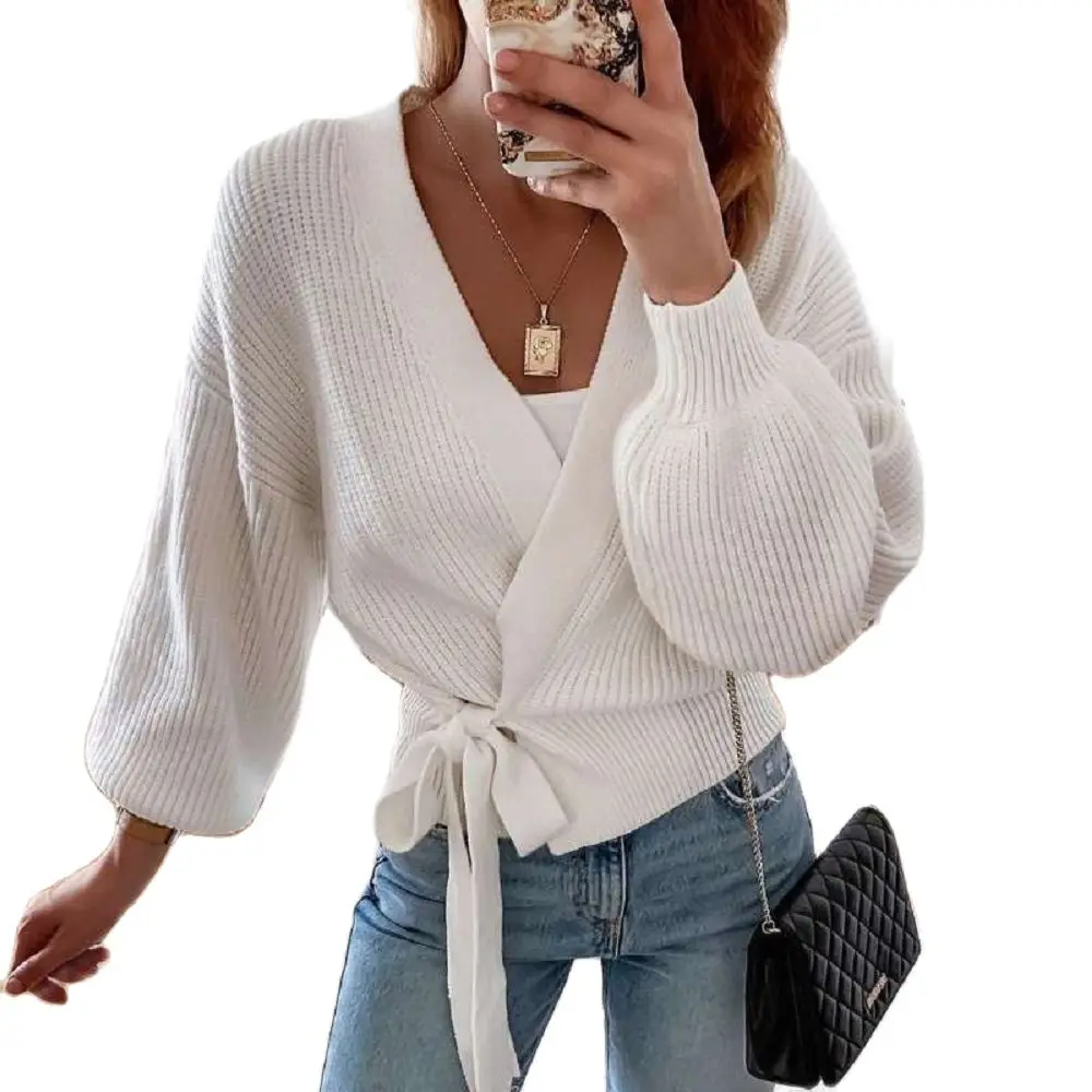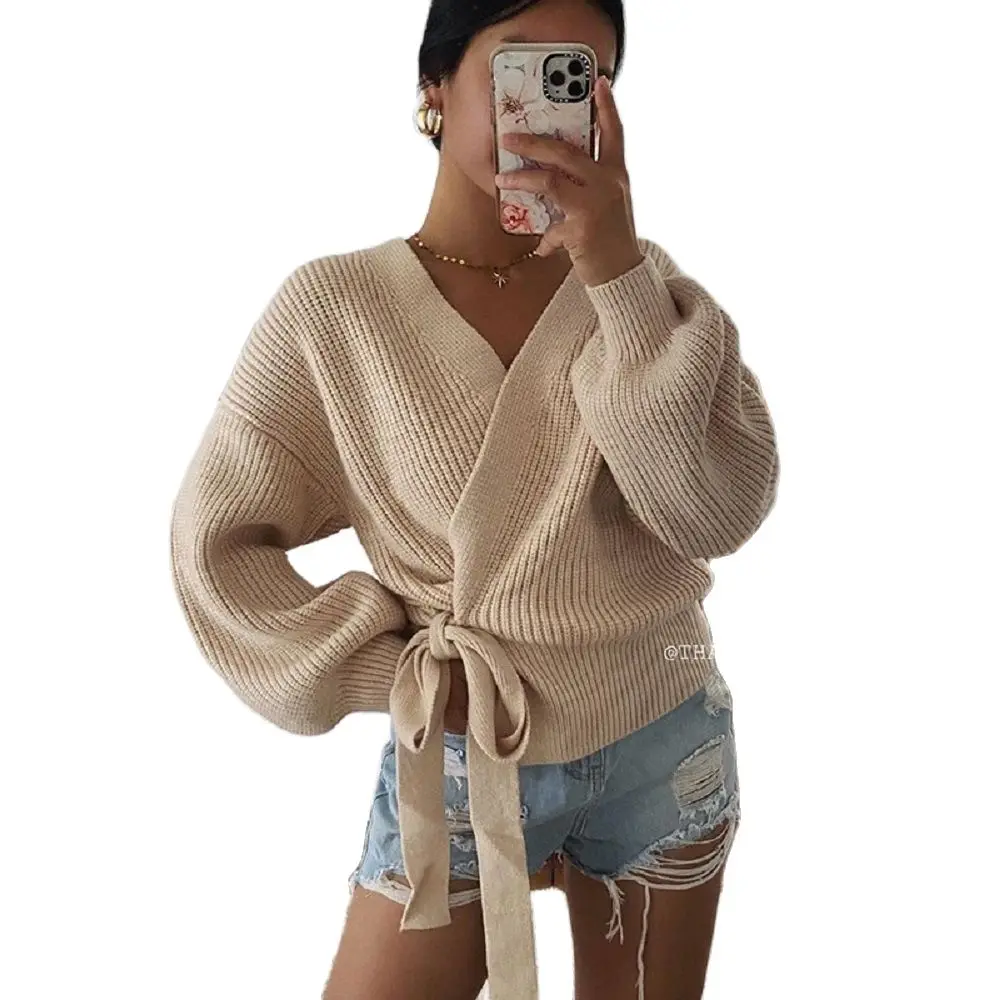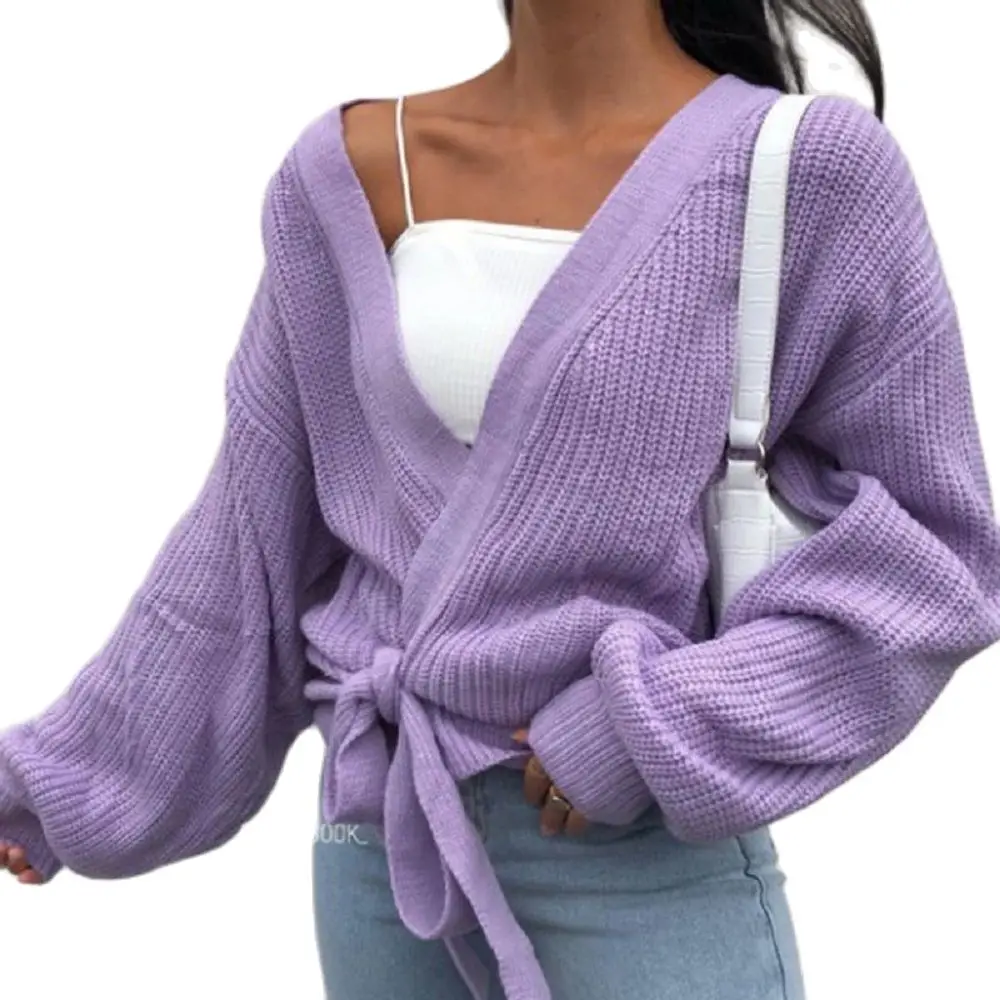 Женский свитер, кардиган на осень и зиму, свободный свитер с длинным рукавом, теплая туника на шнуровке, Повседневный свитер в уличном стиле, повседневная одежда