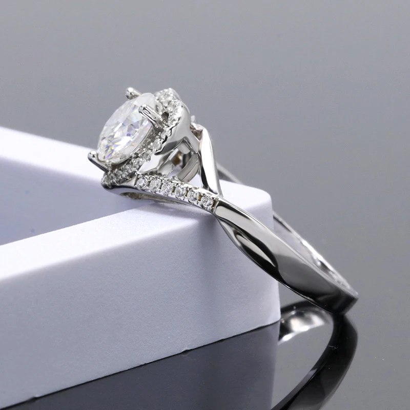 Женское классическое кольцо из серебра 18 К с муассанитом 1-5 карат