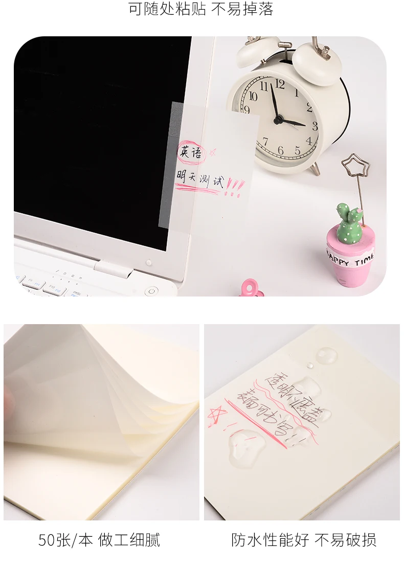 Прозрачные водонепроницаемые блокноты Yoofun для записей, 50 листов, Липкие заметки для ежедневного ношения, планировщик, офисные и школьные принадлежности