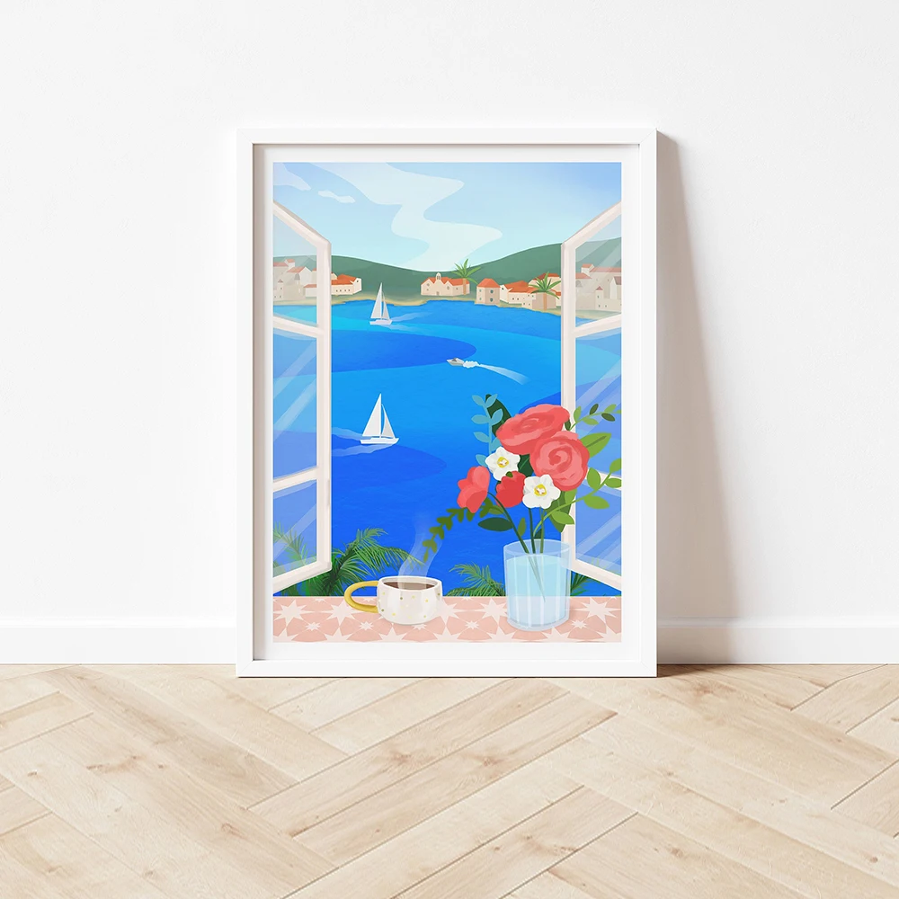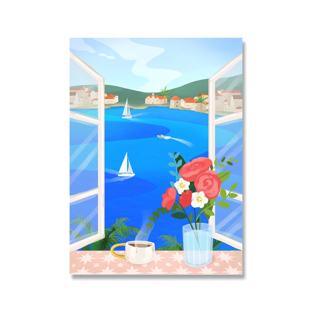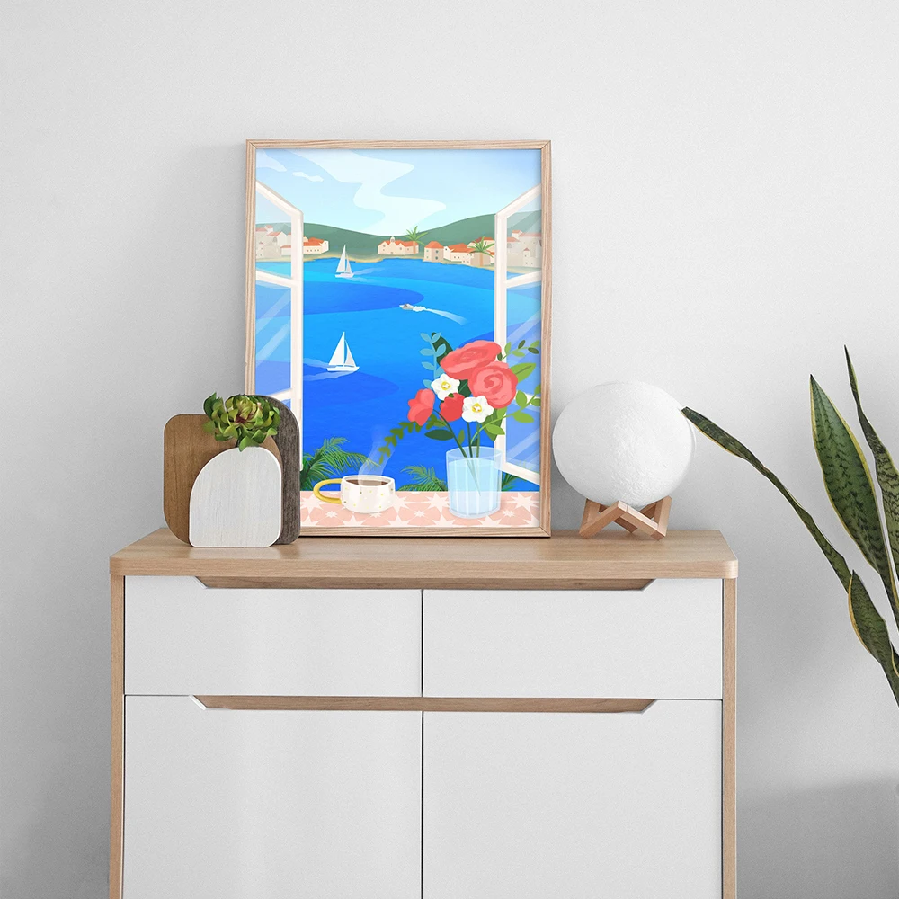 Печать на греческом Санторини, постер на берегу Амальфи, картина Po...