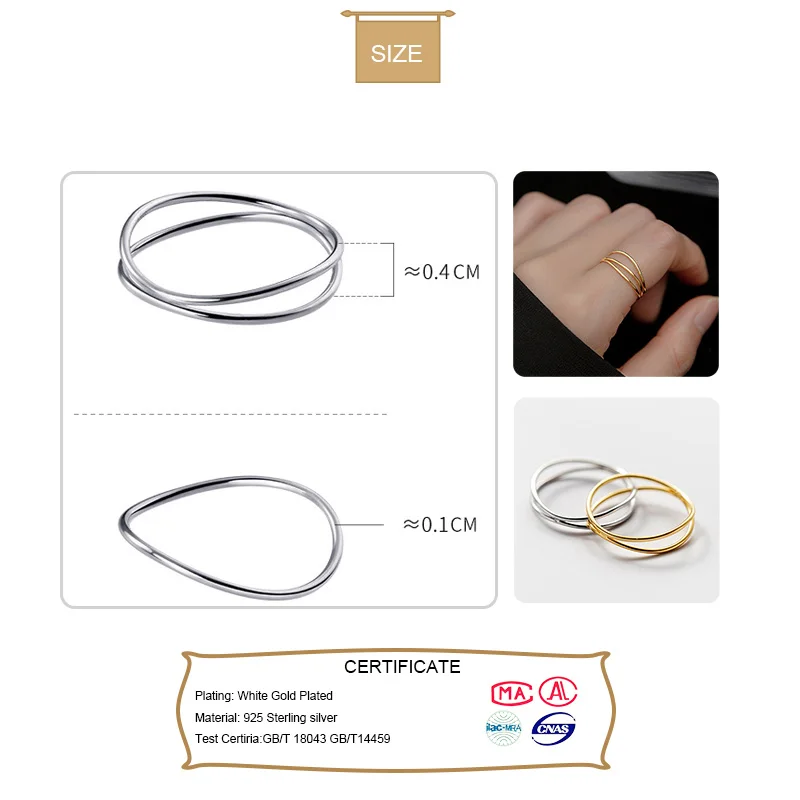 MloveAcc 925 Серебряные Простые линии, круглые кольца на палец для ...