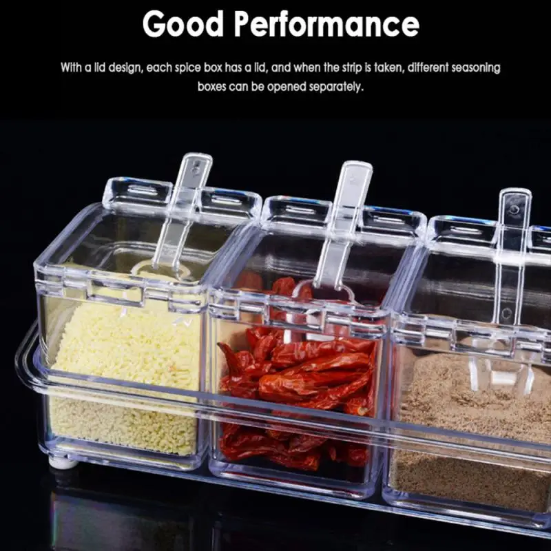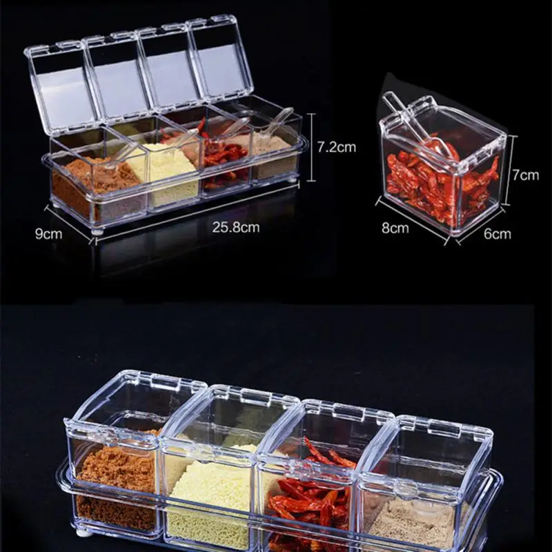 Кухонные принадлежности прозрачная приправа коробка четыре сетки приправа коробка четыре в одном с ложкой приправа банка набор, лучшие в коробке приправы, простой прозрачный цвет, минималистский стиль до крайности. Прозрачный материал простой и простой. Уплотнение хорошее, и нет беспокойства о безопасности приправ. Четыре комбинации, больше вариантов, для ваших потребностей в приготовлении пищи. Каждая маленькая коробка поставляется с маленькой ложкой, которая облегчает измерение в любое время.