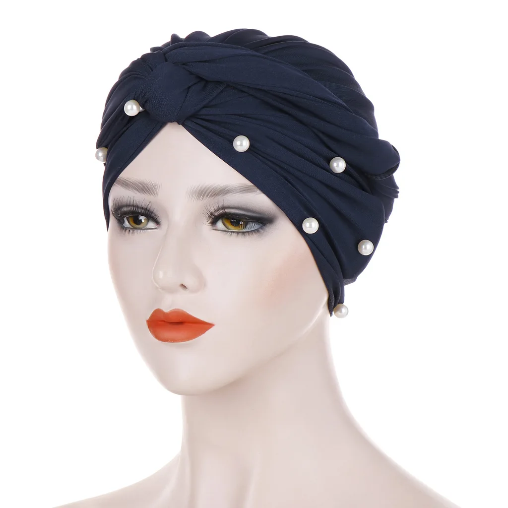 Модный мусульманский хлопковый хиджаб с искусственным жемчугом, тюрбан, шляпа, арабский головной убор, внутренний хиджаб, шапка, мусульманский головной убор для женщин