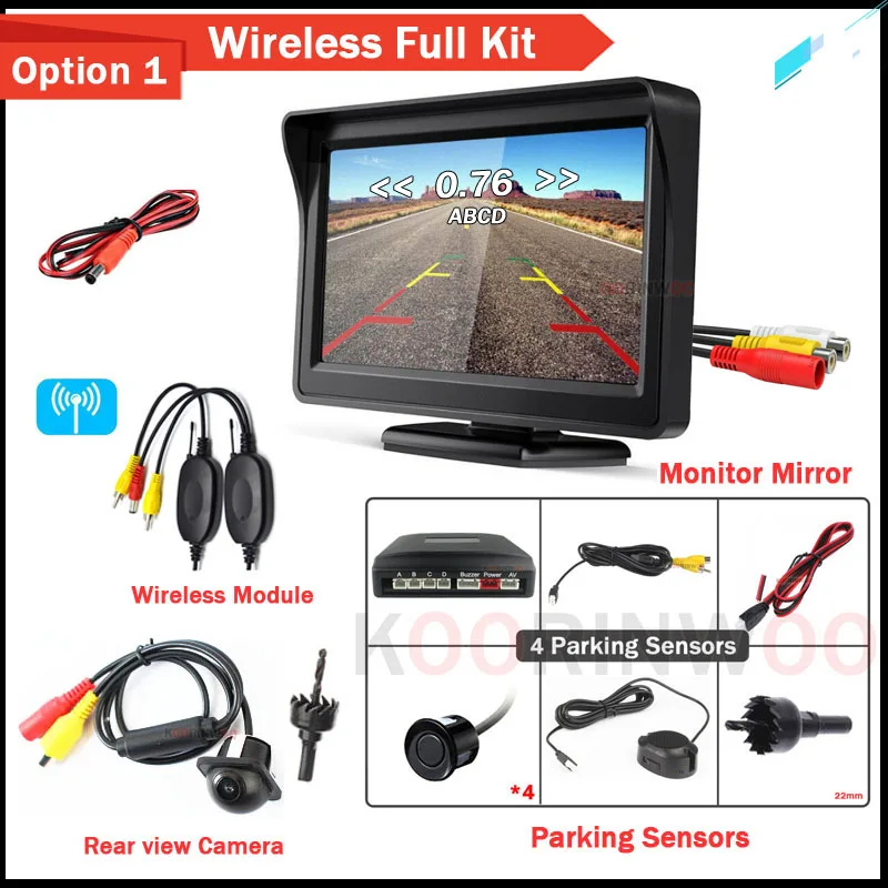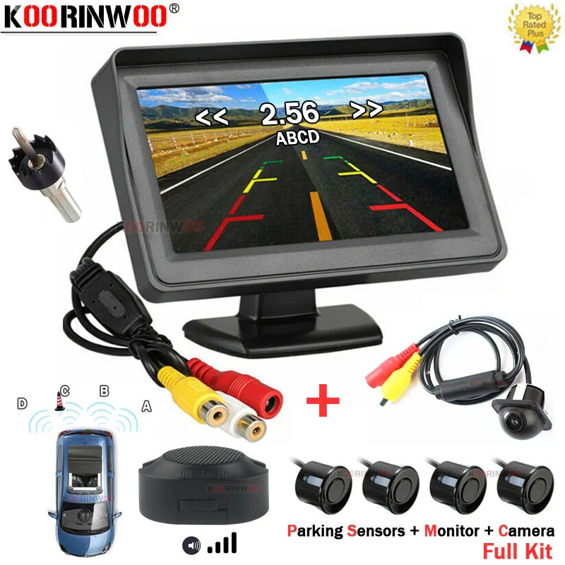 Система парковки Koorinwoo с видимым видеодатчиком парковки, 4 парктроника, регулируемая звуковая система, камера заднего вида с зеркалом заднего вида, монитор изображения RCA