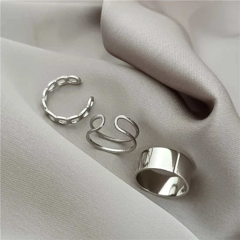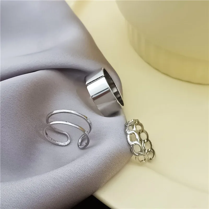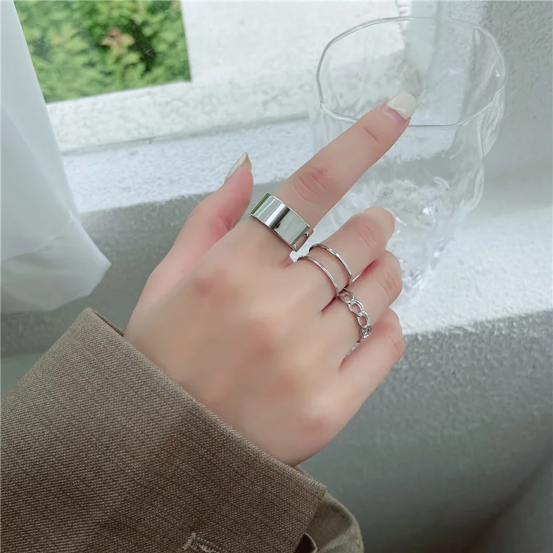 Sindlan 4 шт. Панк Серебряный цвет цепь кольца для женщин простой х...