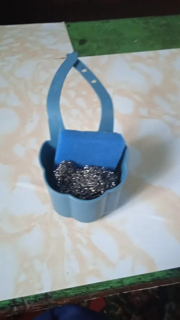 Пластик, но не хлипкий. . У меня сейчас на кране висит силиконовая корзинка , она побольше и интереснее смотрится. Туда можно положить губку и щеточку для мытья посуды. А эта маленькая - для одной губки. Посмотрим , сколько прослужит.