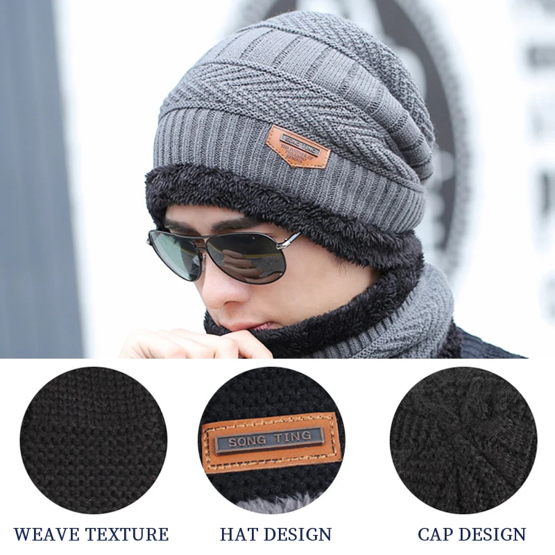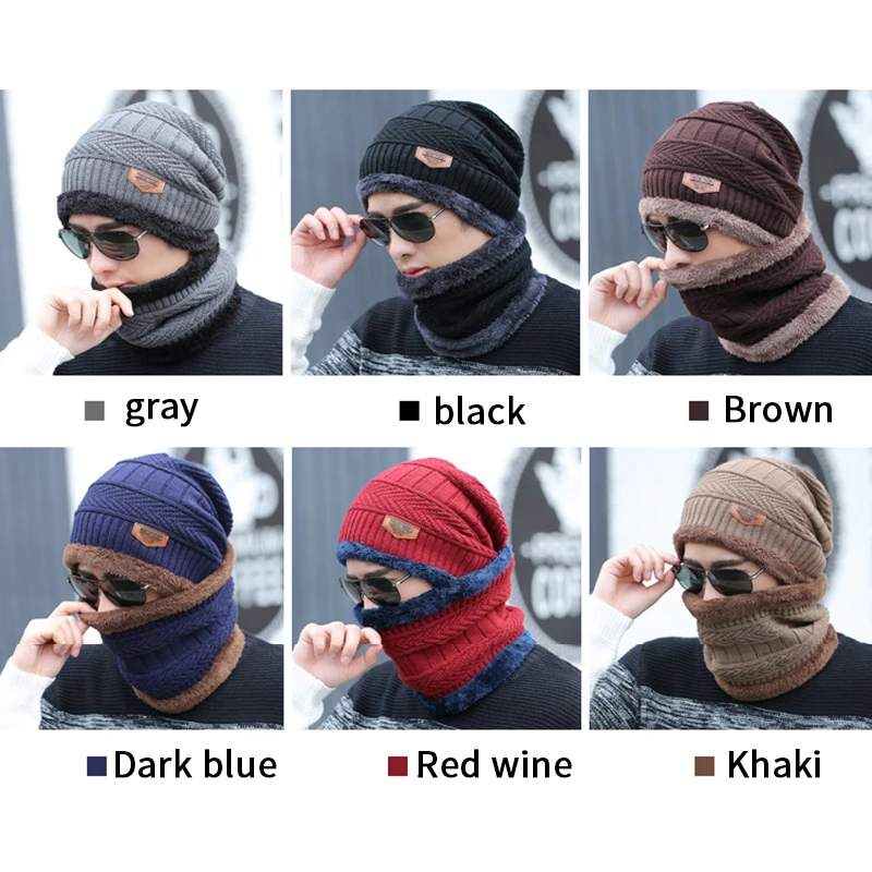 Модная мужская теплая зимняя шапка шарф Мягкая вязаная шапка шарф Набор шапочки зимняя шапка для женщин вязаные шапки унисекс