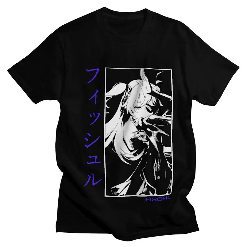 Футболка мужская с принтом фишл геншин ударный, хлопковая приталенная рубашка в стиле Харадзюку, с коротким рукавом, с рисунком аниме-игры