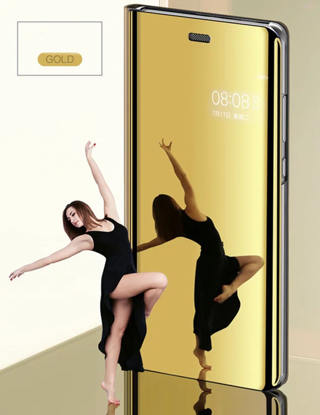 2. Умный зеркальный кожаный чехол-книжка, быстро просматривает SMS, звонки, дату, время и т. д.