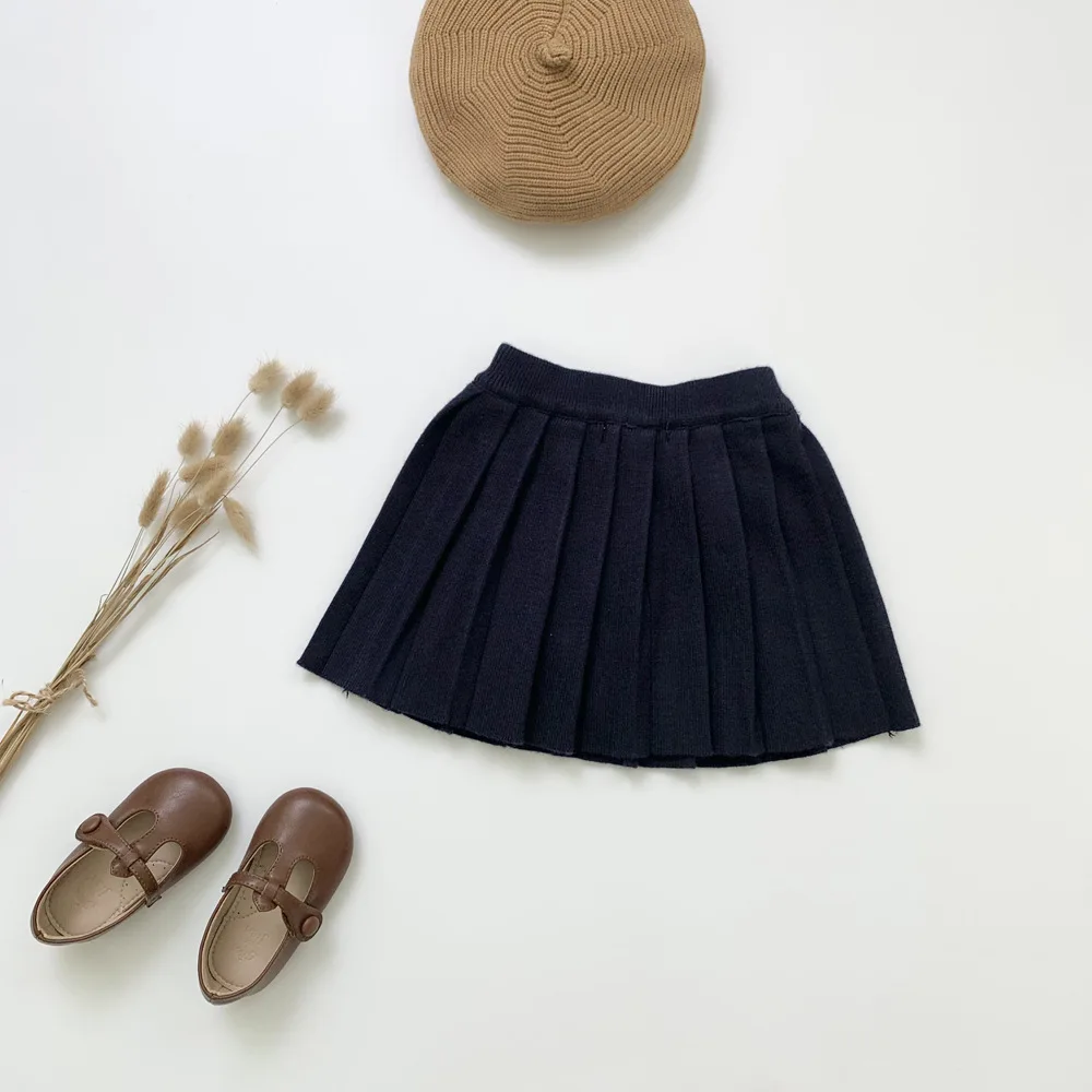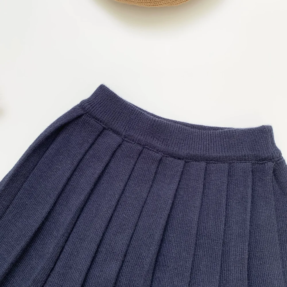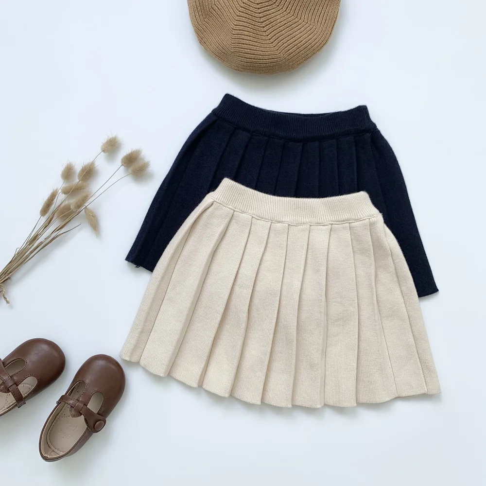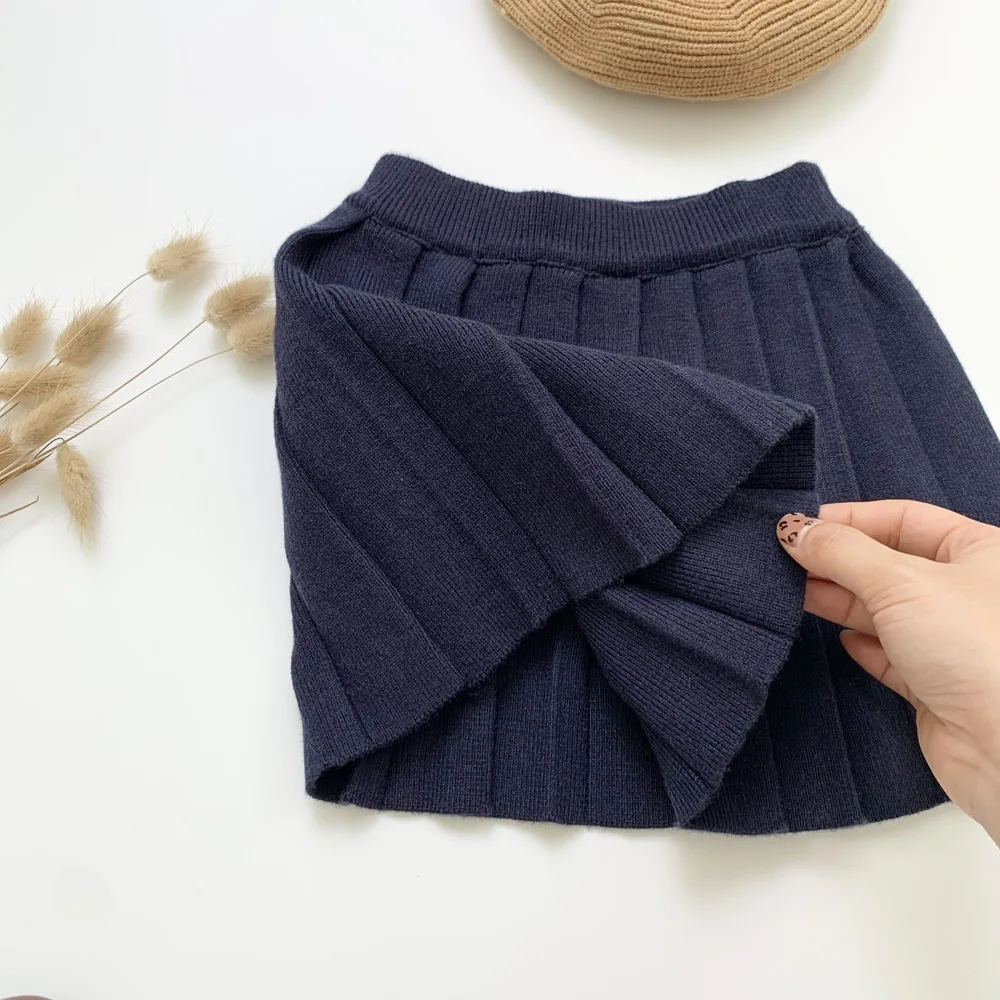 Одежда для маленьких девочек, однотонная детская вязаная юбка-пачка, детские школьные юбки для девочек, модная мини плиссированная юбка, Зимняя юбка для девочек