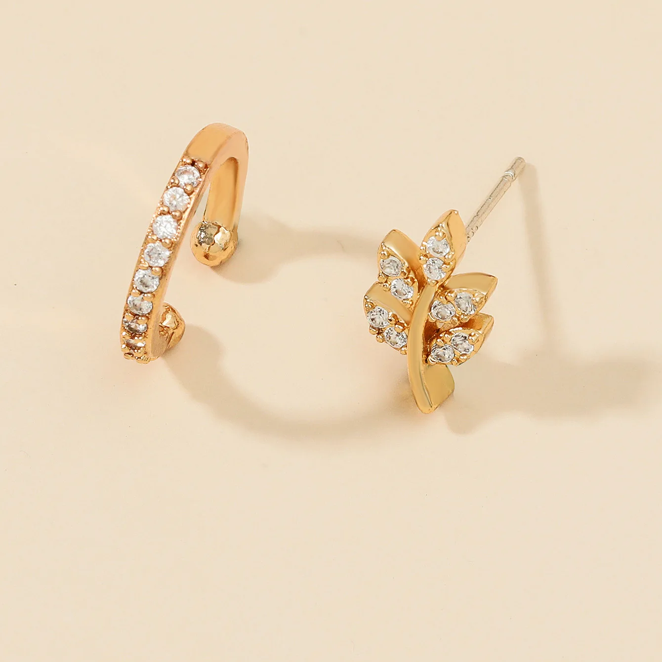 Женские Геометрические серьги-гвоздики с фианитами, в форме листьев