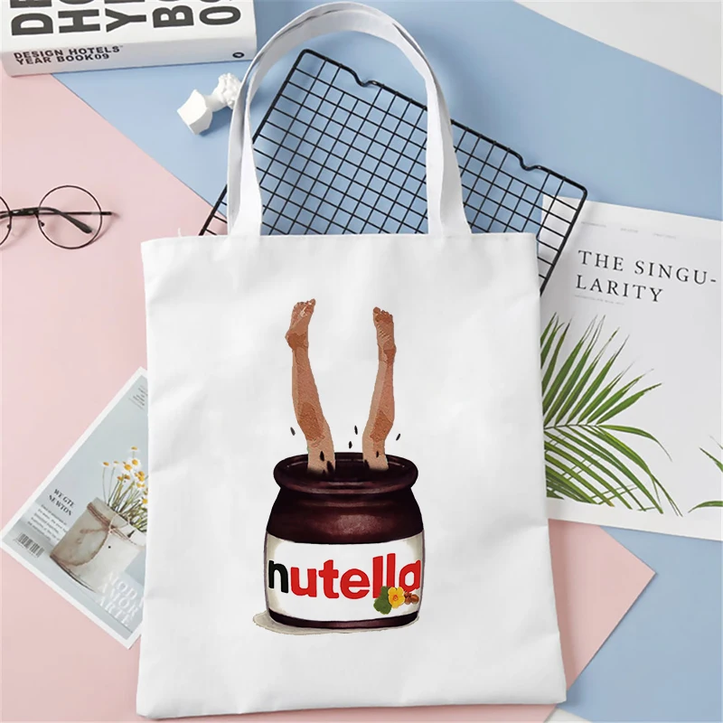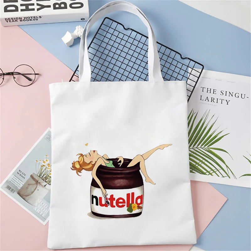 Сумка Nutella женская с графическим принтом, милый саквояж для покупок, модная эстетичная белая вместительная сумочка в стиле Харадзюку