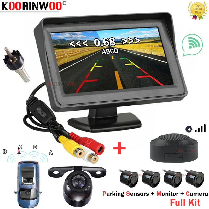 Автомобильные парковочные датчики Koorinwoo, задний резервный радар-детектор + камера заднего вида, поддержка монитора, зеркальное изображение, звуковой сигнал