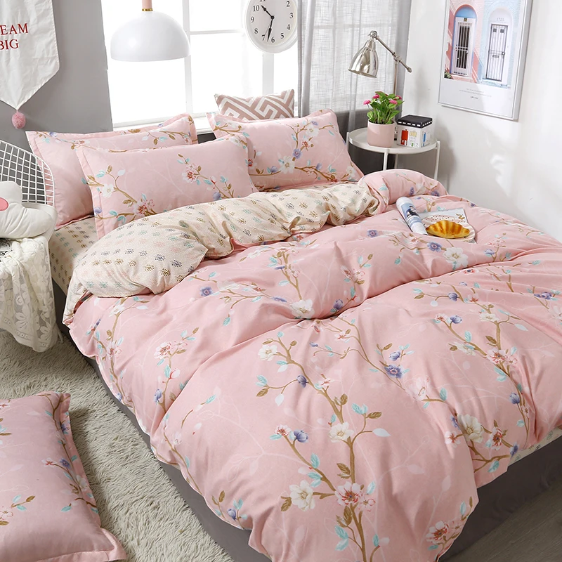 Комплект постельного белья из 3-4 предметов, мягкий текстильный комплект розового цвета с цветочным принтом, с милым Рисунком Листьев, пододеяльник, простыня, белье