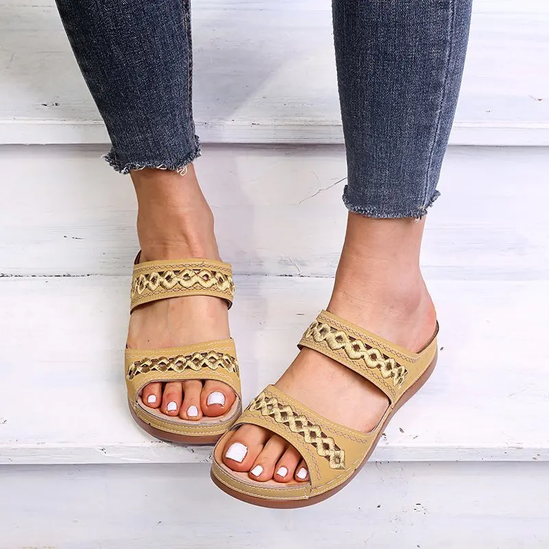 Босоножки женские ортопедические на танкетке, сандалии на нескользящей подошве, на платформе, повседневная обувь в ретро стиле, большие размеры, A40, лето 2021
