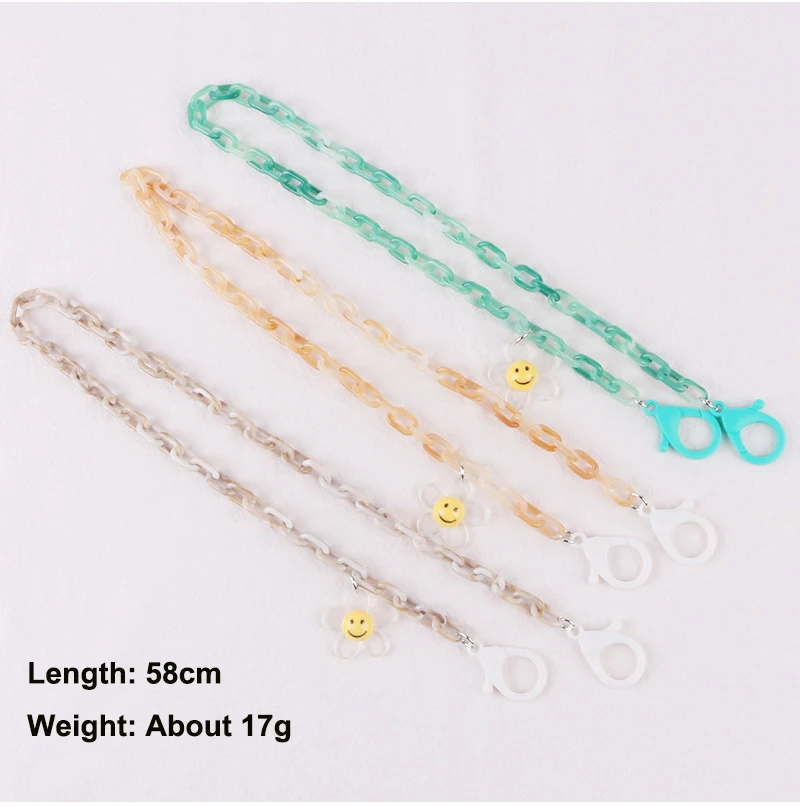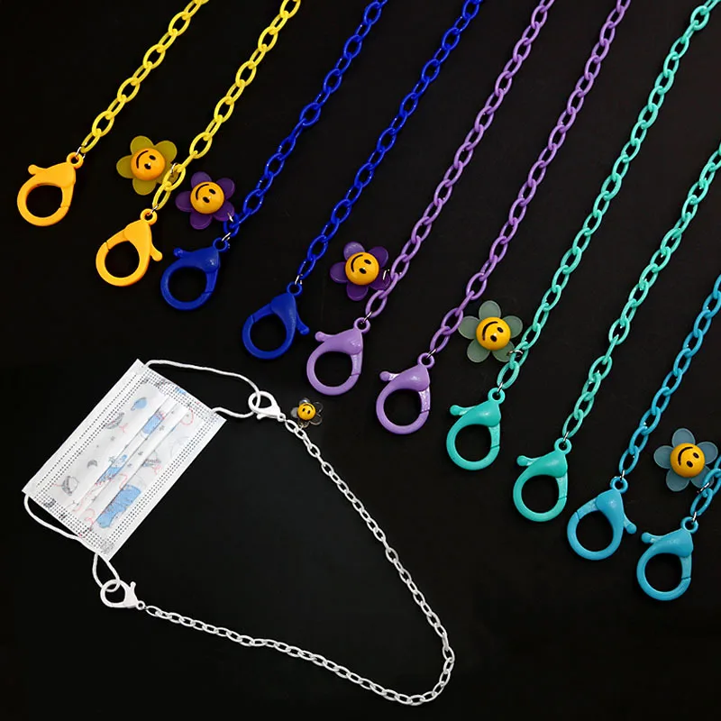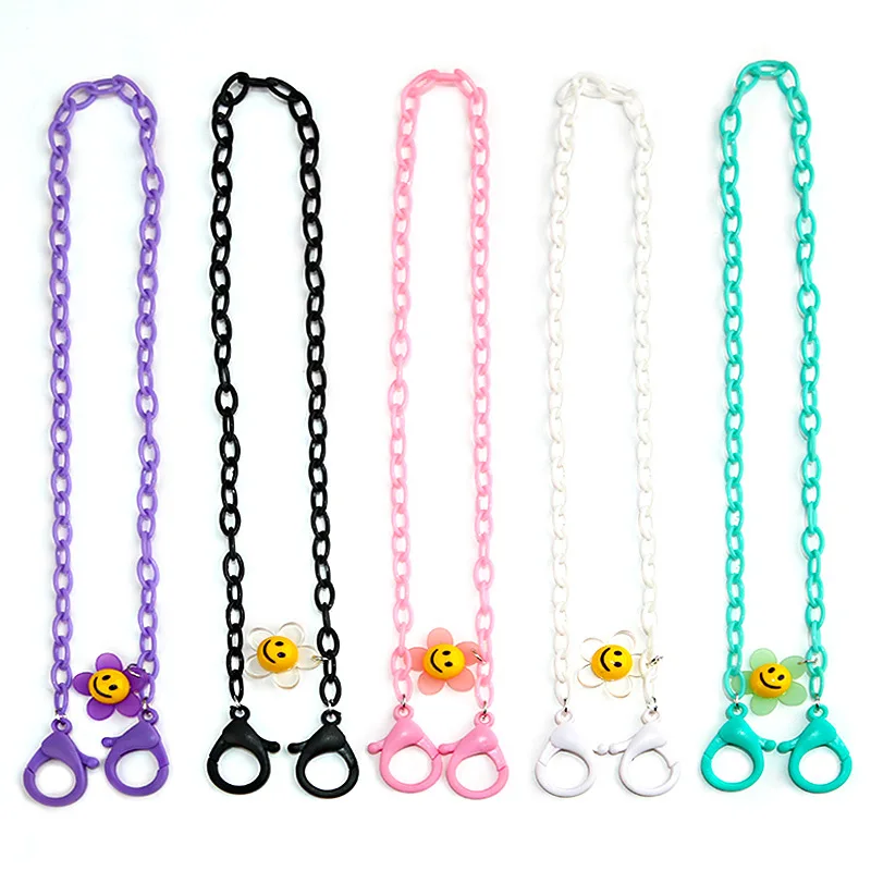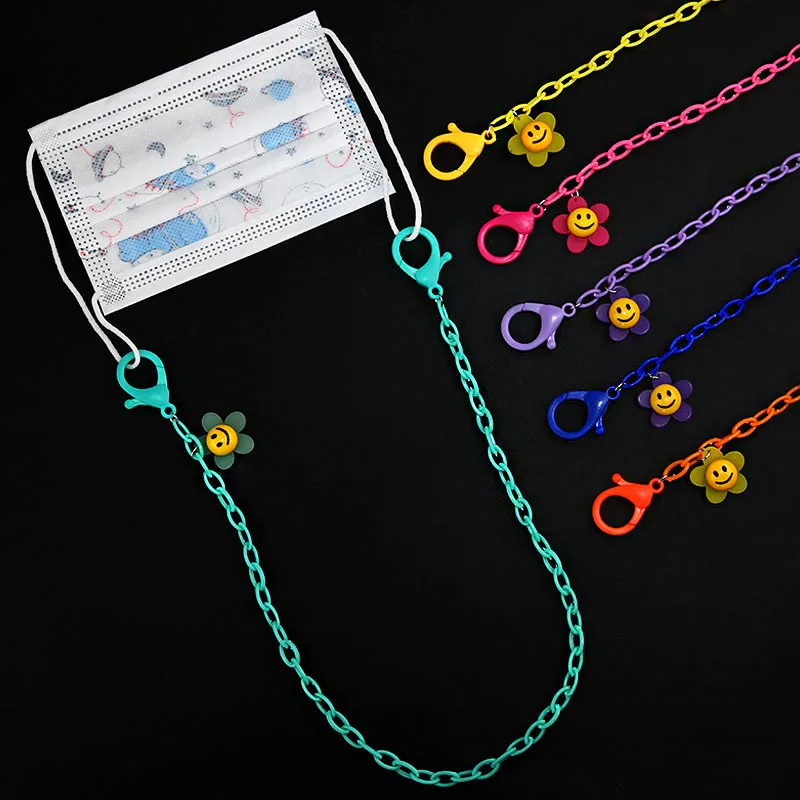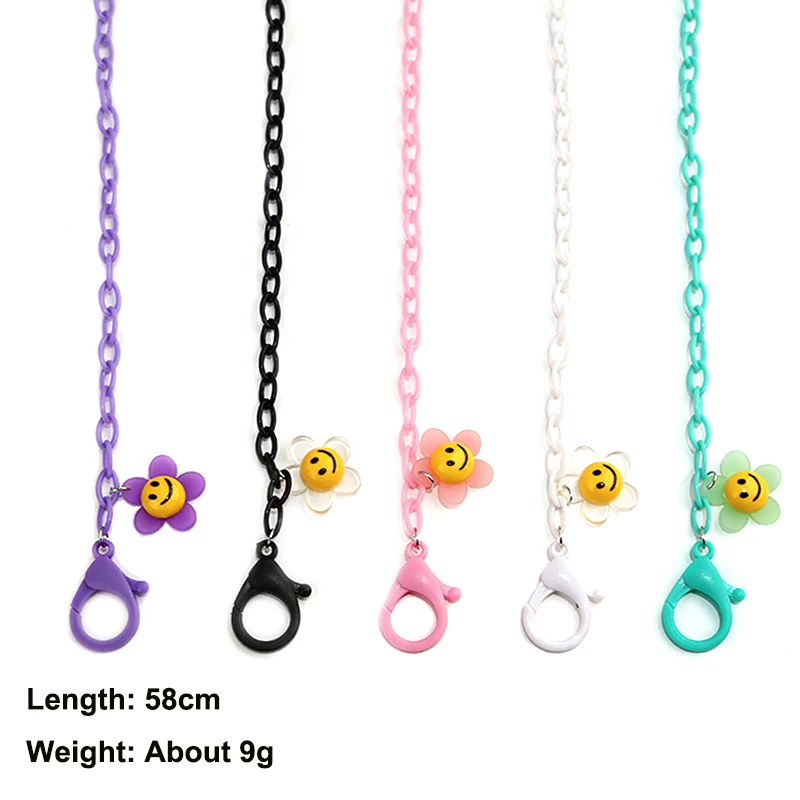 ✿ 2021 Новая модная цепочка для очков для детей, защита от потери, защита от солнца, цветок, улыбающееся лицо, Очаровательная подвеска, маска, цепь, солнцезащитные очки, очки для чтения, ремешок, держатель, ювелирное изделие, подарок для женщин, девочек