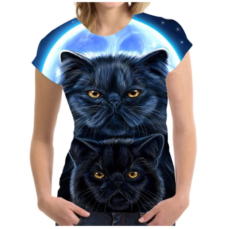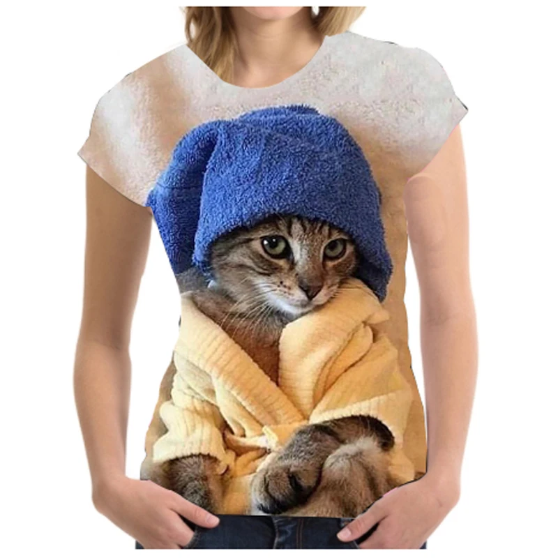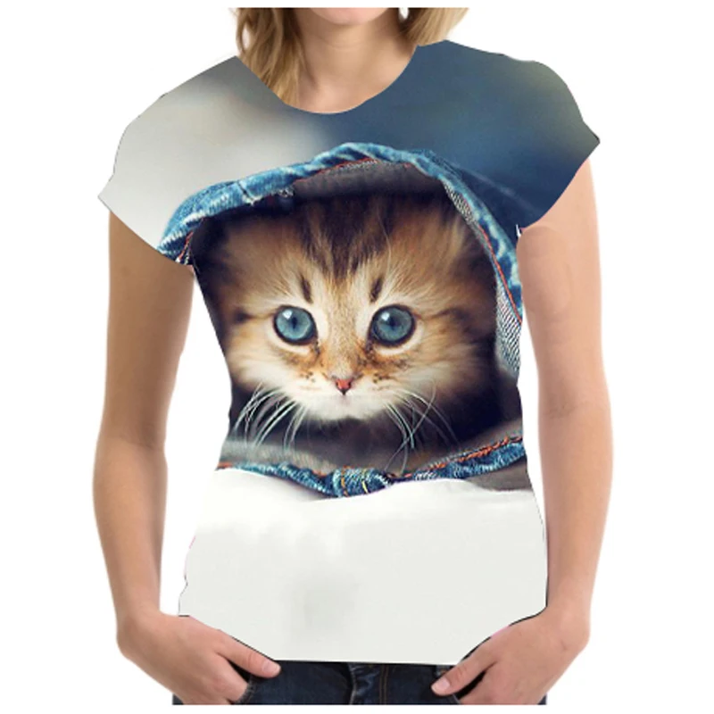 Женская мода 3d кошка печать Повседневная летняя футболка с коротки...