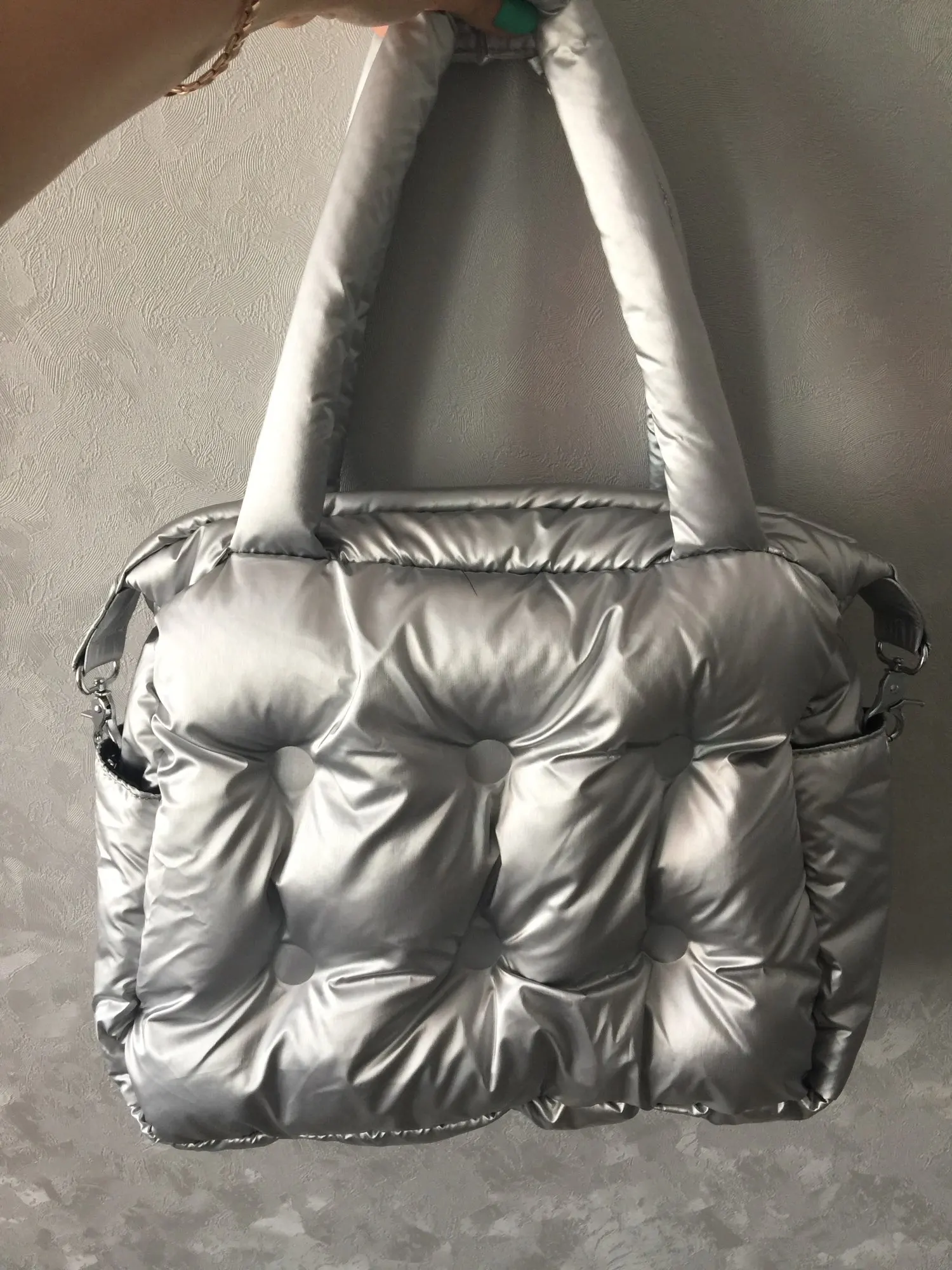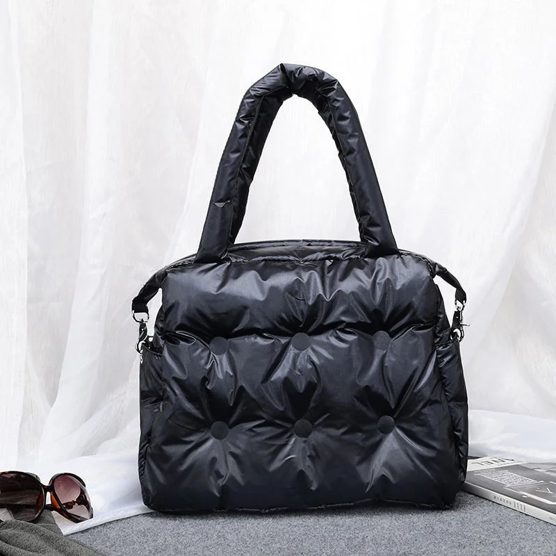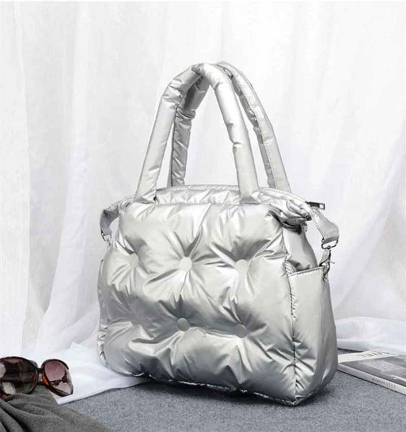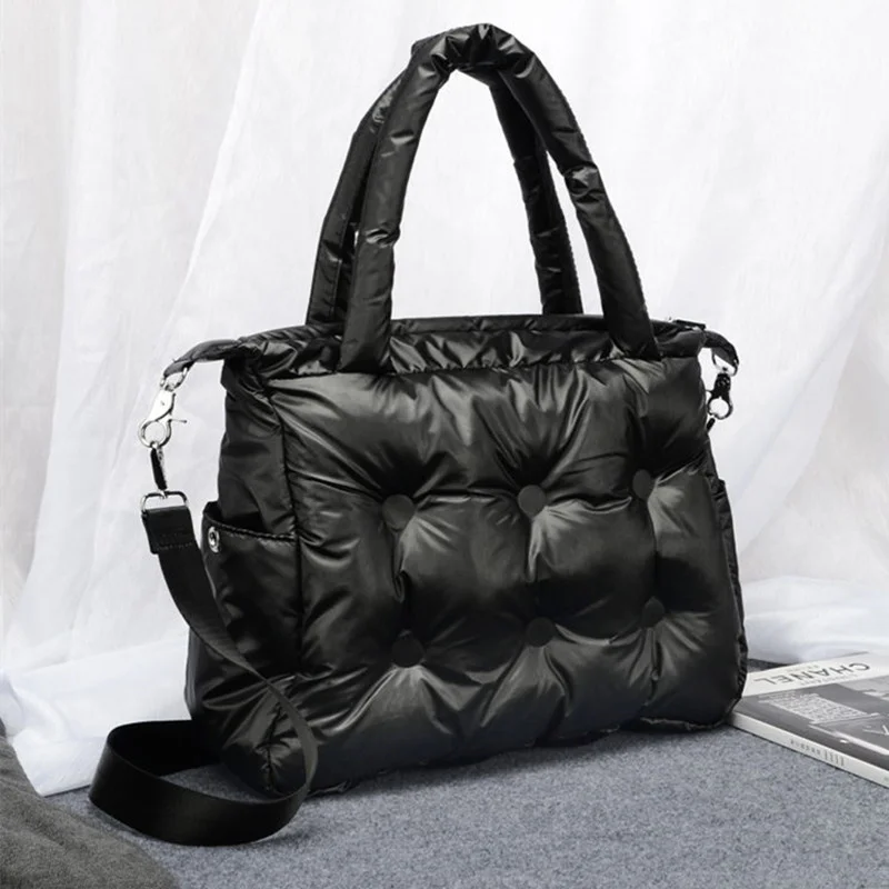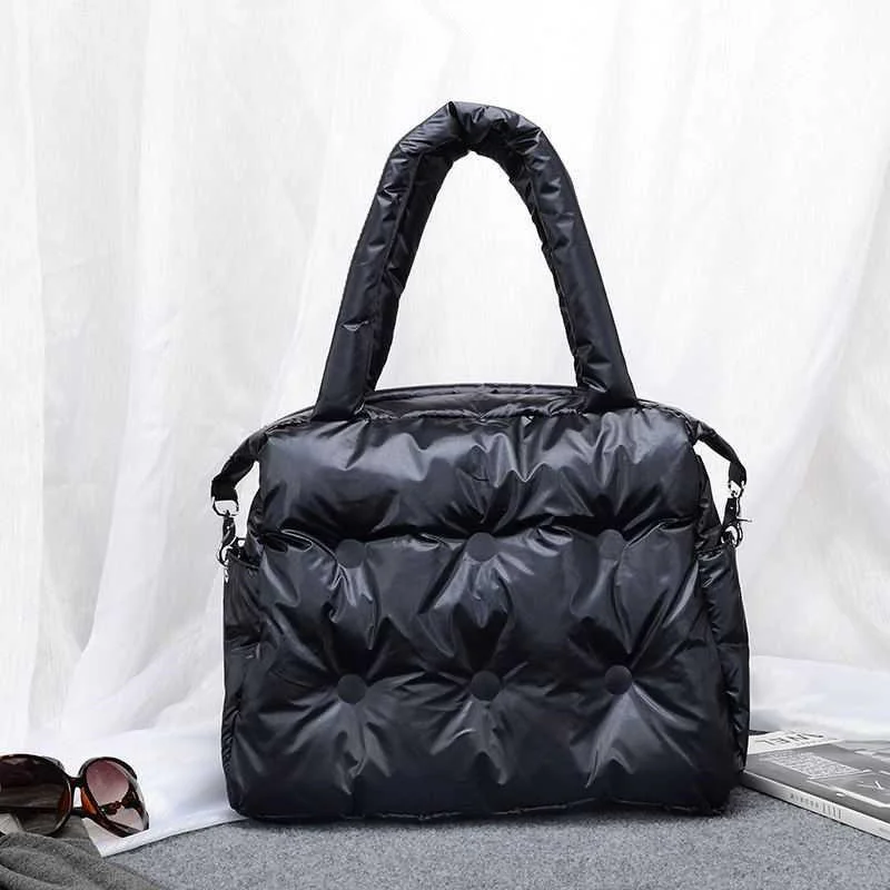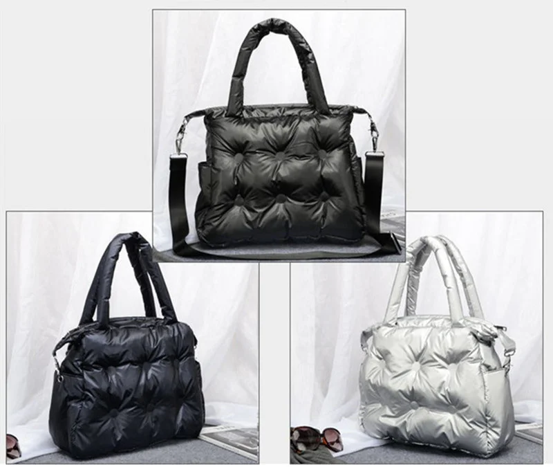 Повседневные вместительные Хлопковые женские сумки, дизайнерские сумки на плечо, нейлоновая сумка через плечо с пухом и перьями, вместительная сумка-тоут, кошелек для покупок