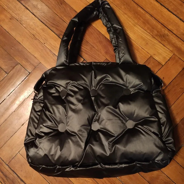 Отличная не очень большая темленькая сумка. Размеры то что надо, немного коротко ваты ручки и подтарчивал синтепон но это незначительные мелочи. В целом очень довольны, прекрасный зимний вариант