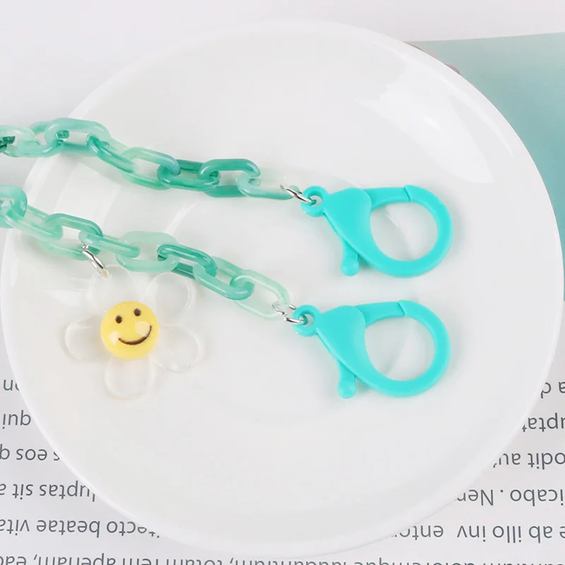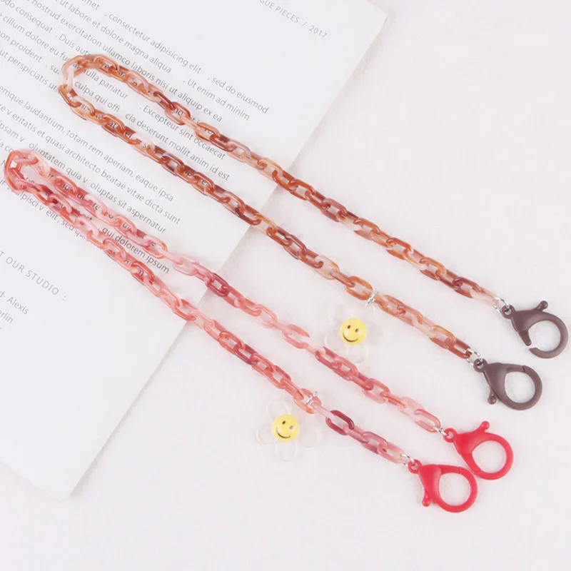 Новинка 2021, модный акриловый ремешок для детской одежды, подвеска со смайликом и цветком, защита от потери, цепочка на шею, ремешок для женщин и детей