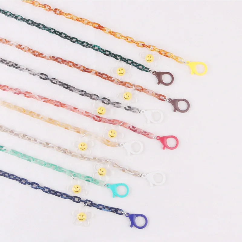 2021 Новинка, модная акриловая Студенческая с маской, держатель для шнурка, Детский смайлик, цветочный Шарм, маска против потери, цепочка, шейный ремешок для женщин и детей