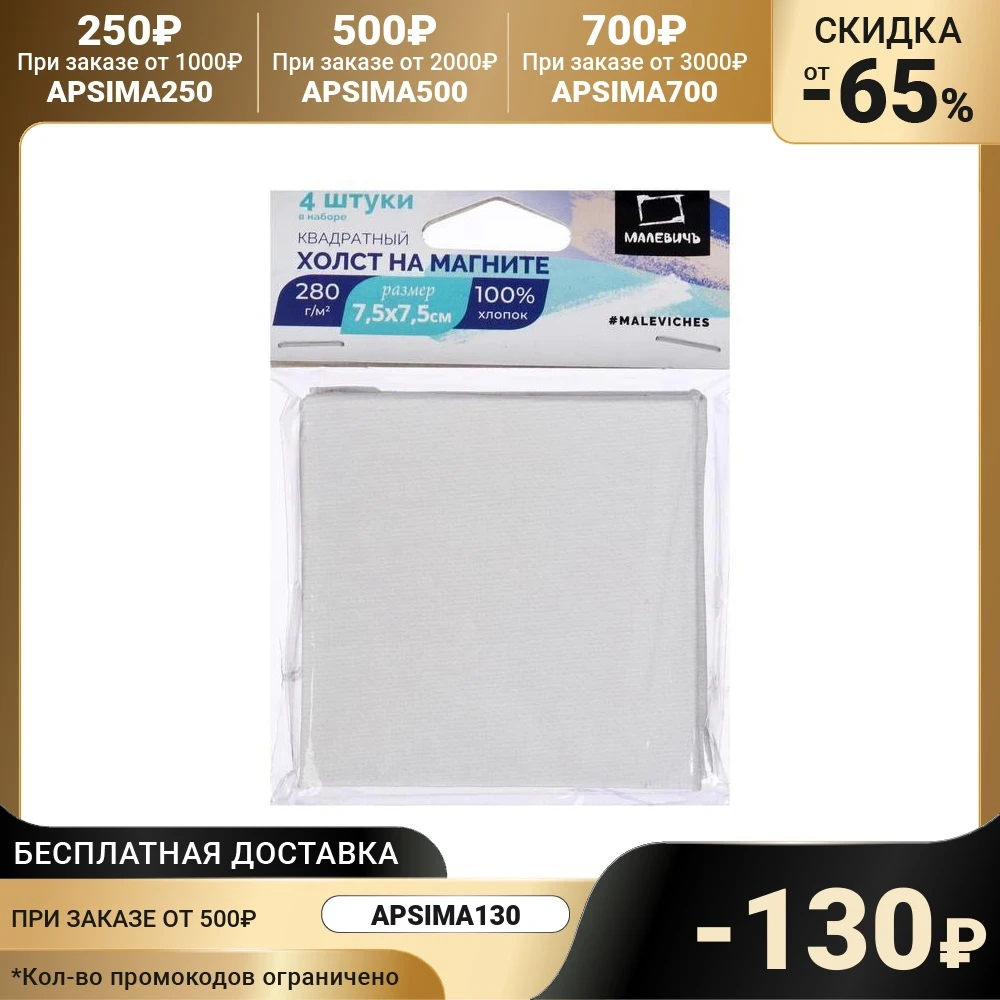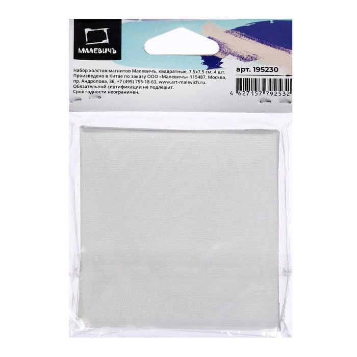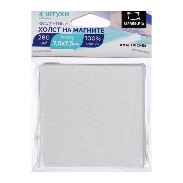 Холст-магнит, набор 4 штуки 7.5 х 7.5 см, 3 мм, квадратные, в пакете