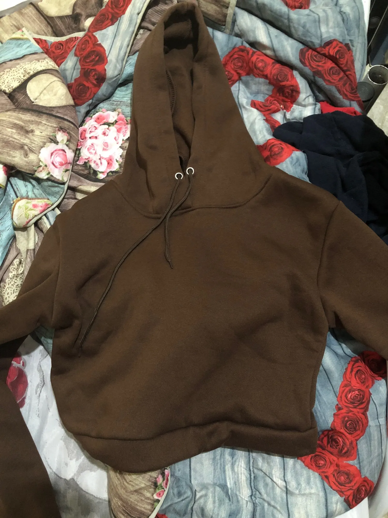 Женский спортивный комплект с толстовкой и брюками, укороченный топ с капюшоном и длинным рукавом, штаны с карманами, 1 комплект