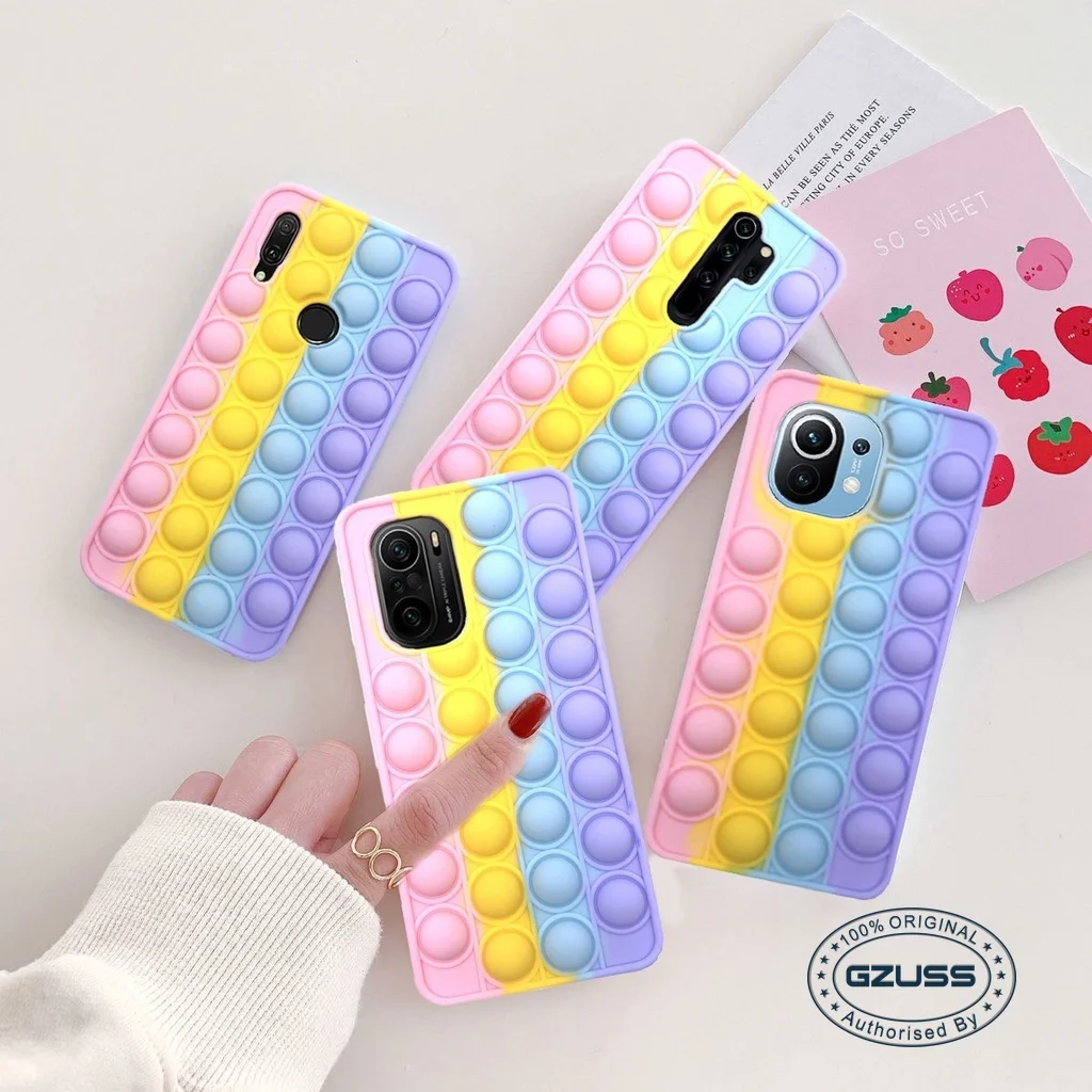 GZUSS для Xiaomi Redmi Note 10 Pro 9 8 7 Pro 9s 9T Mi 11 10 Poco M3 F3 10T K40 Pop Bubble Toy, мягкий Радужный силиконовый чехол