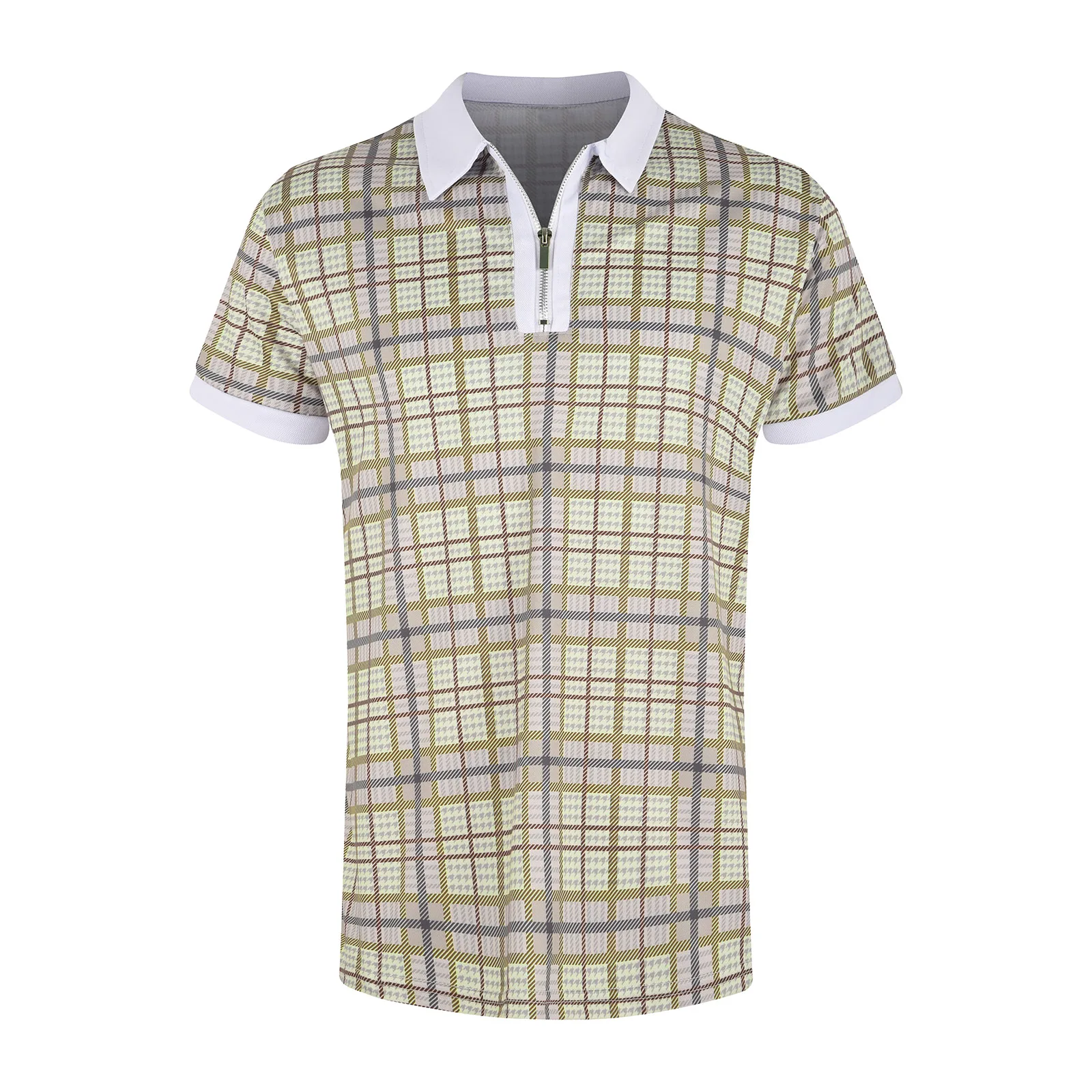 Рубашка-поло мужская, с коротким рукавом, в клетку, на молнии