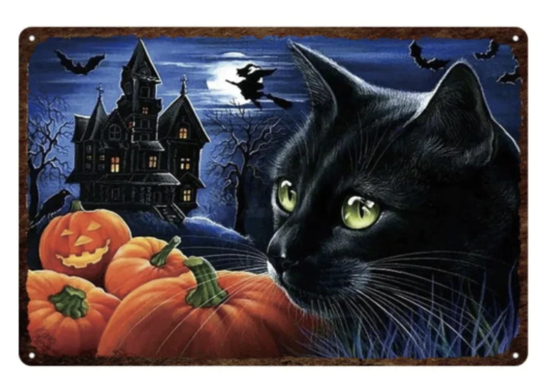 Декор на Хэллоуин, забавная кошка, винтажный металлический знак, искусство, украшение для дома для гостиной, зоомагазина, Настенный декор 20x30 см