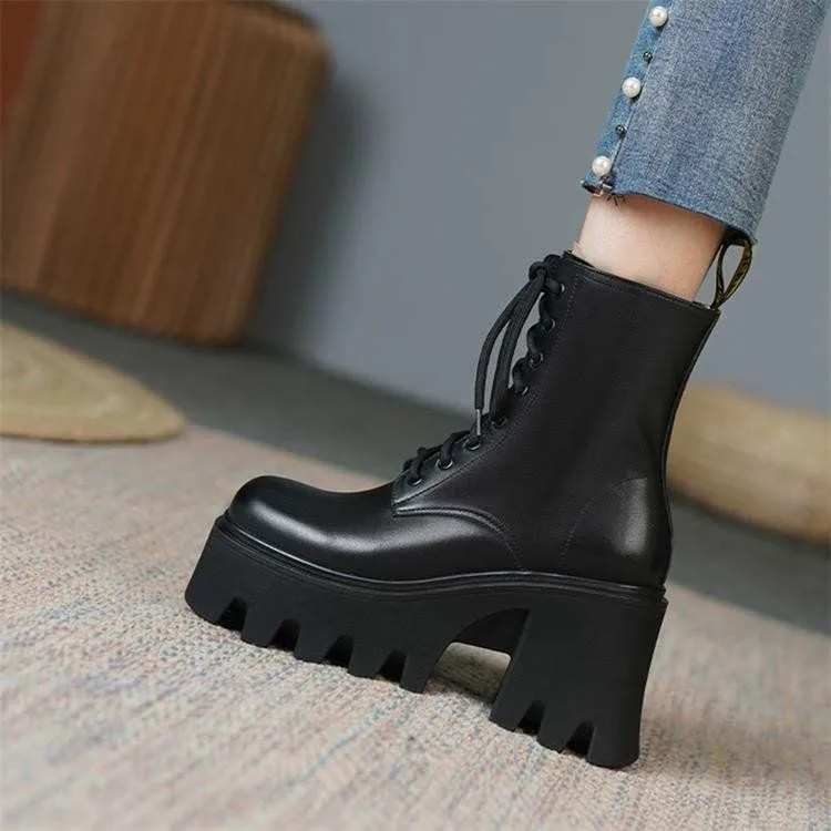 Женские ботильоны на очень высоком каблуке, Нескользящие полусапожки на платформе и квадратном каблуке, привлекательные плиссированные ботильоны со шнуровкой спереди, 2021