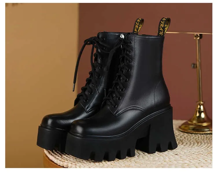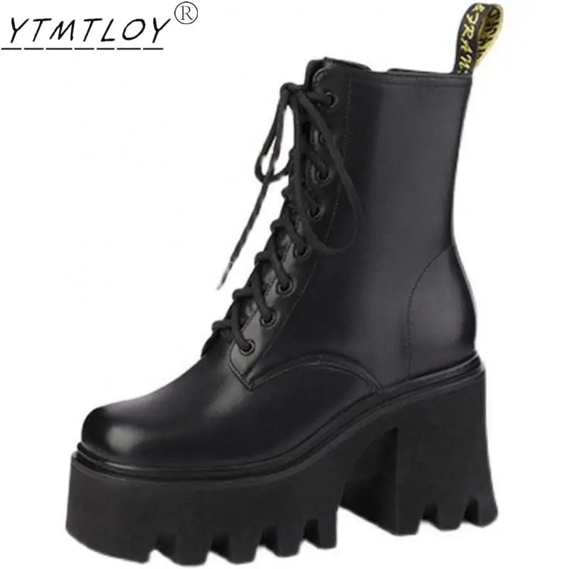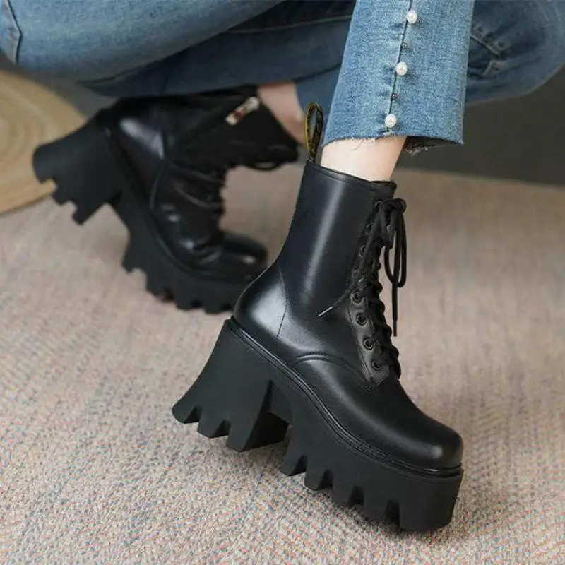 Женские ботильоны в готическом стиле, черные ботинки на платформе и...