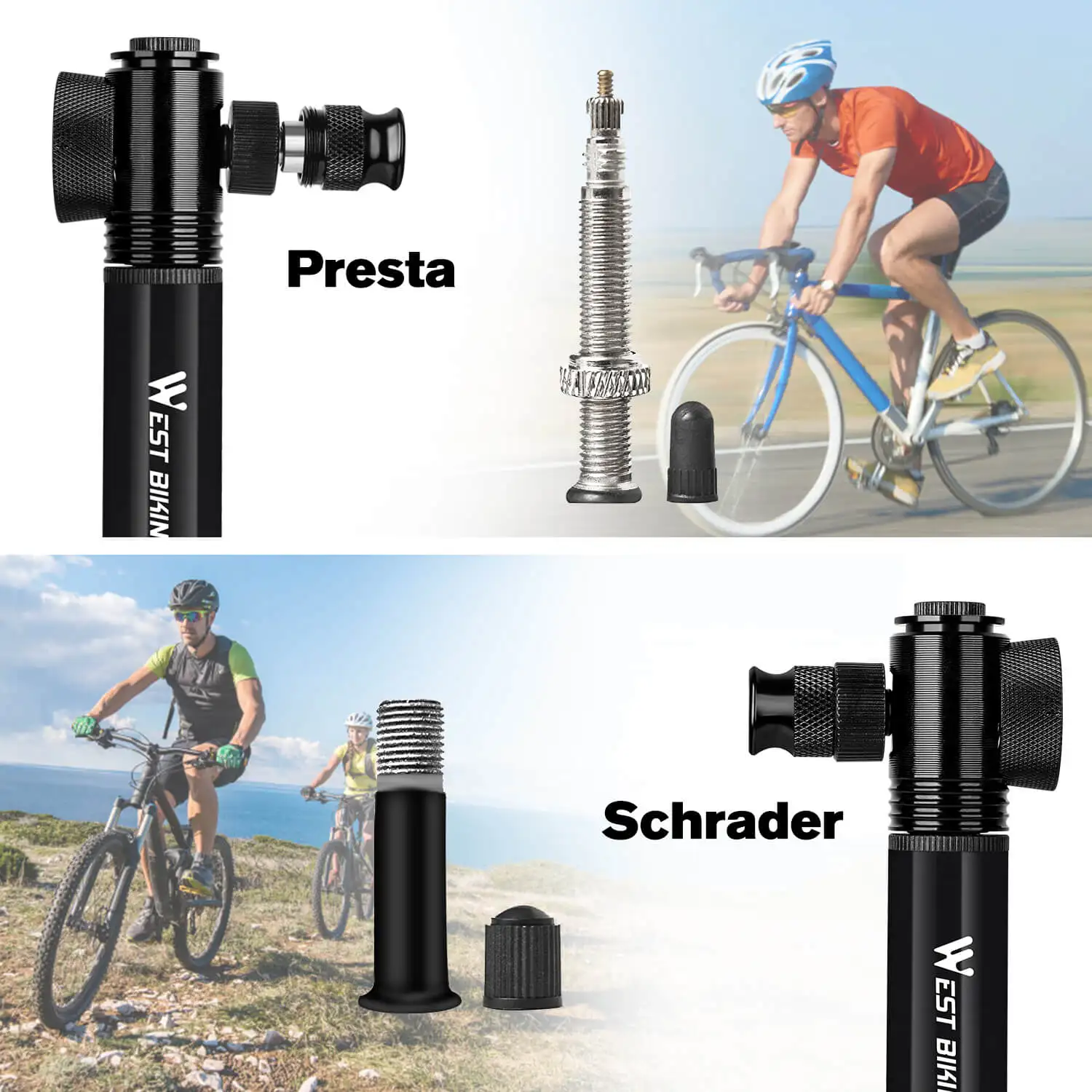 Насос велосипедный WEST BIKING PSI PrestaSchrader, портативный вело...
