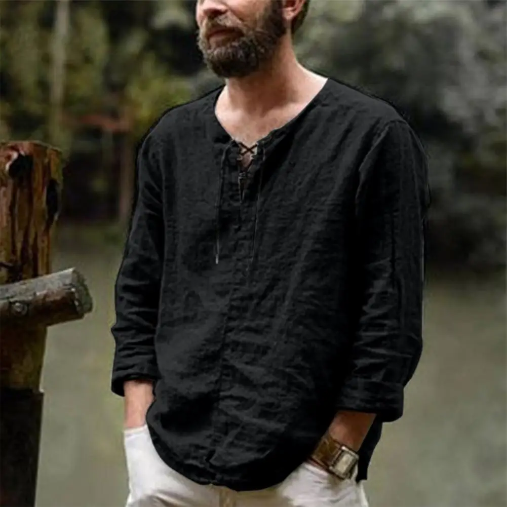 Мужские футболки, привлекательная износостойкая однотонная свободная футболка из ткани с V-образным вырезом, Модная Удобная Повседневная футболка