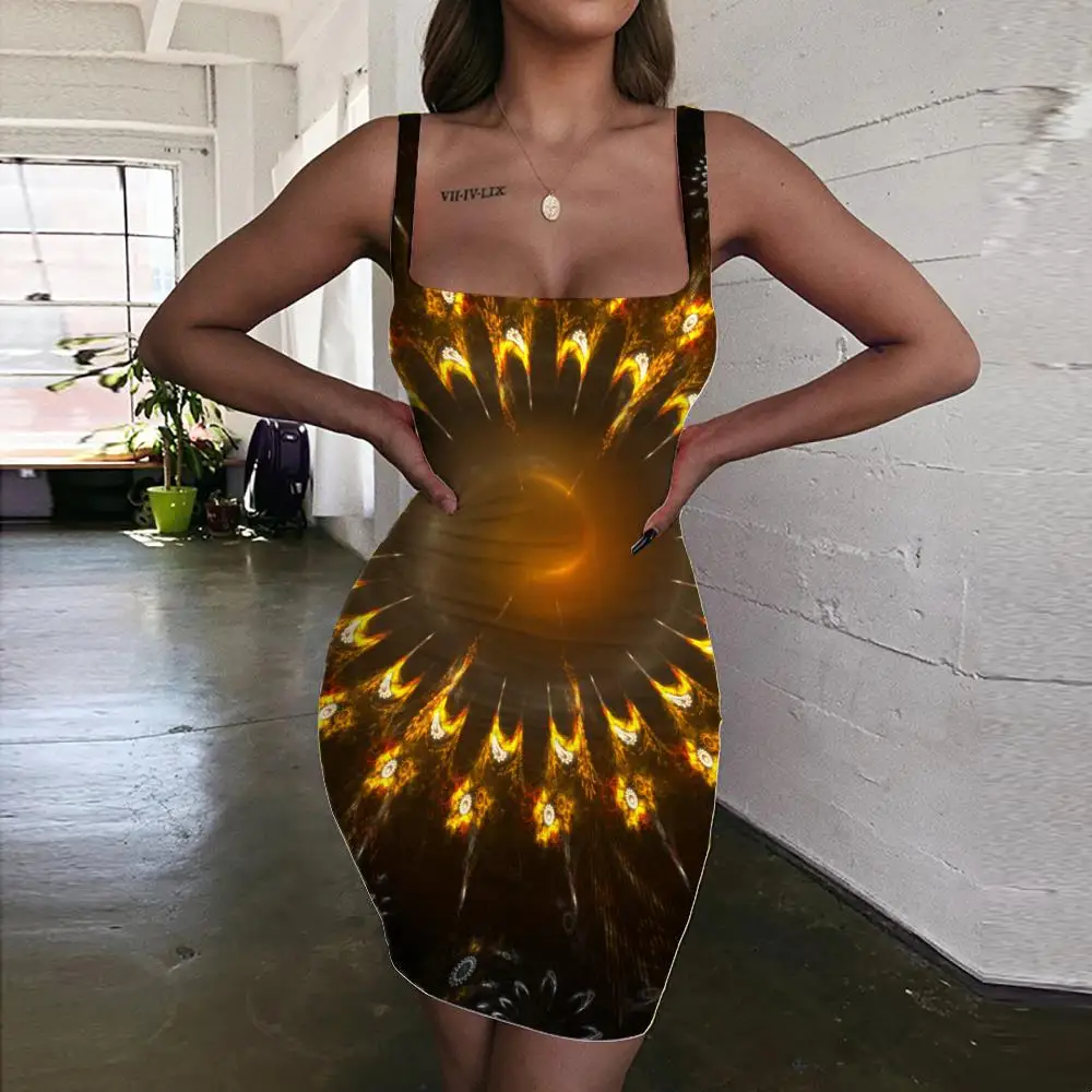 Платье женское неоновое с абстрактным 3D-принтом, на бретелях
