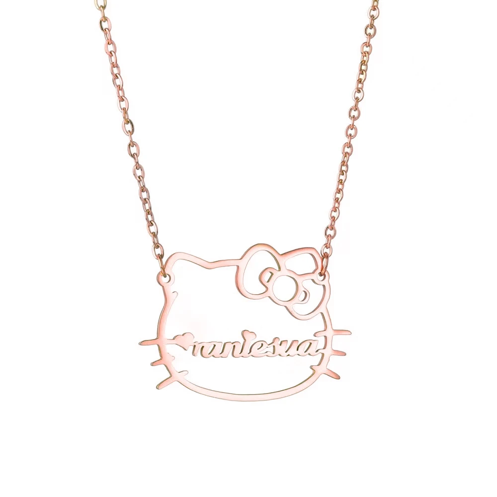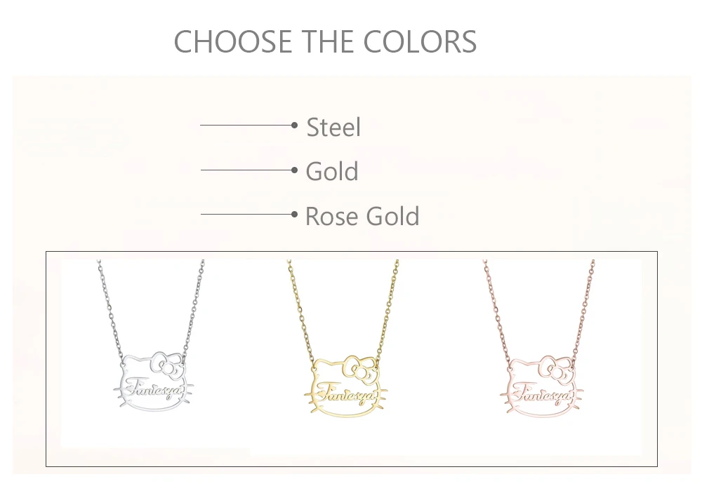 Милое детское ожерелье, индивидуальный кулон-табличка с именем кота, ювелирное изделие из нержавеющей стали, ожерелье с буквенным принтом на заказ