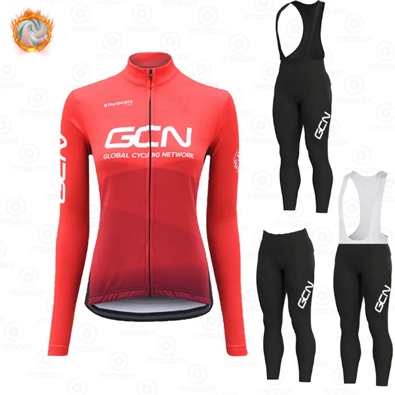 2021 GCN Красный зимний флисовый комплект для велоспорта, новая оде...