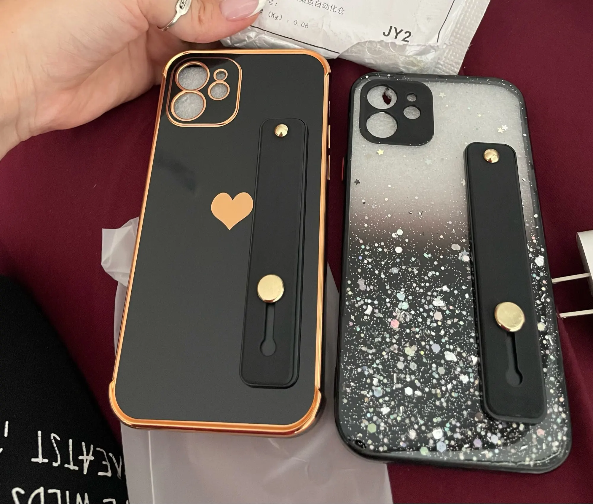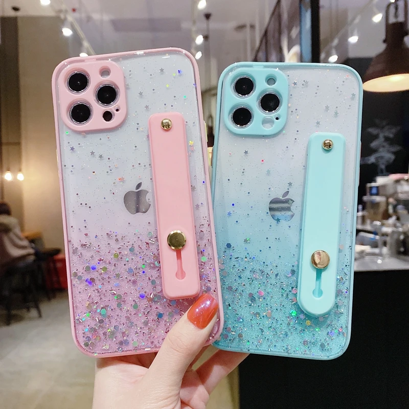 Мягкий блестящий чехол на запястье для телефона iPhone 12 11 13 Pro Max X XR XS Max 7 8 Plus SE 2020, прозрачный мини-бампер, задняя крышка